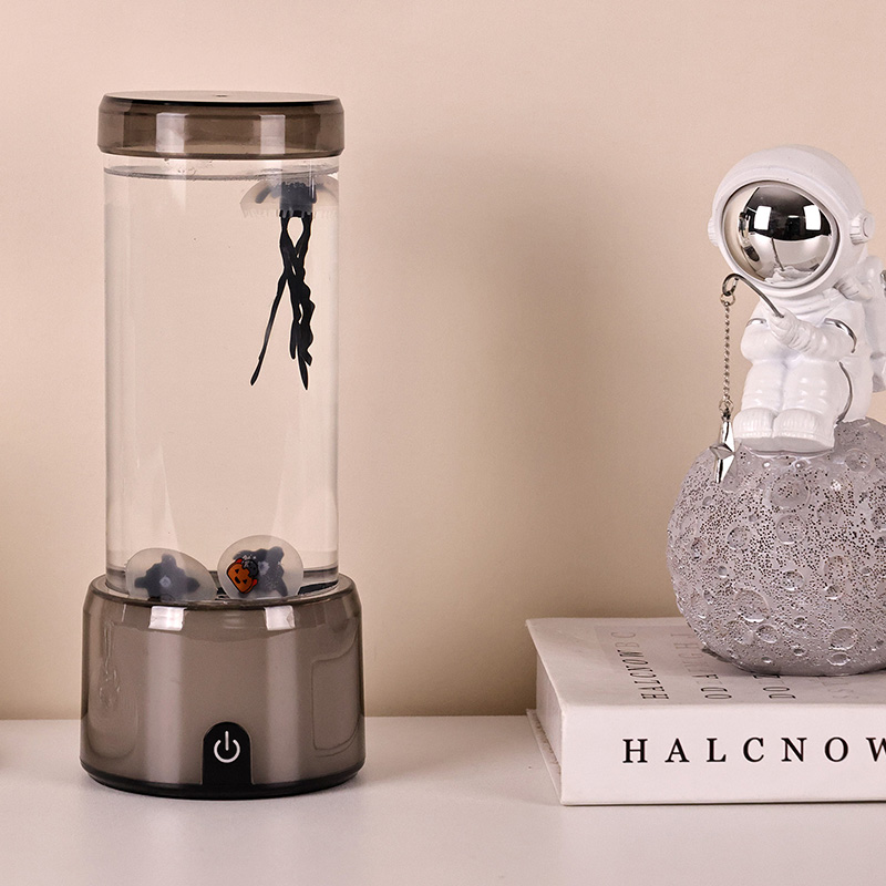 Najprv pridajte vodu a potom do nádrže pridajte 3-5 ml čistiaceho prostriedku na riad, aby sa medúzy pohybovali hladko. (Prosím nepridávajte rozpustené mydlo)