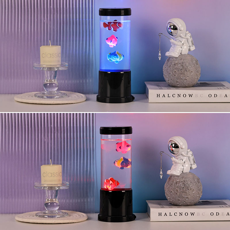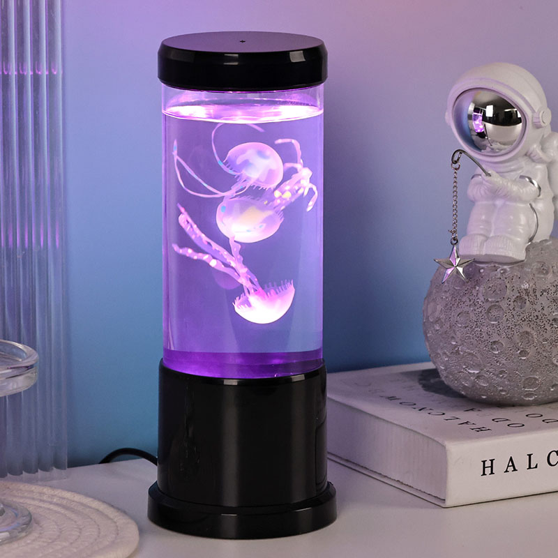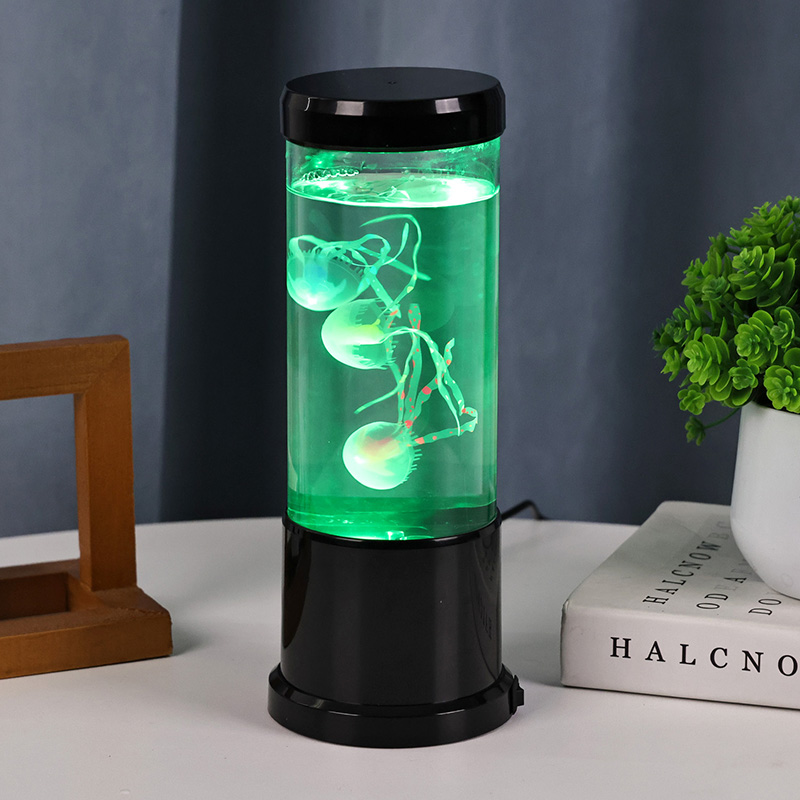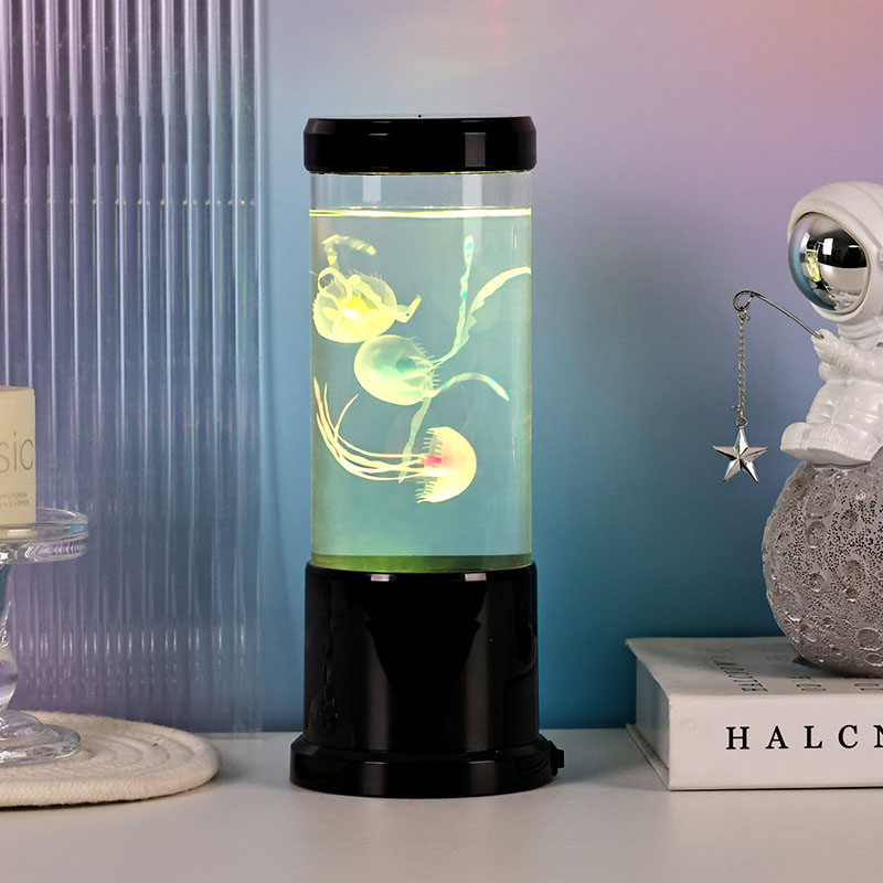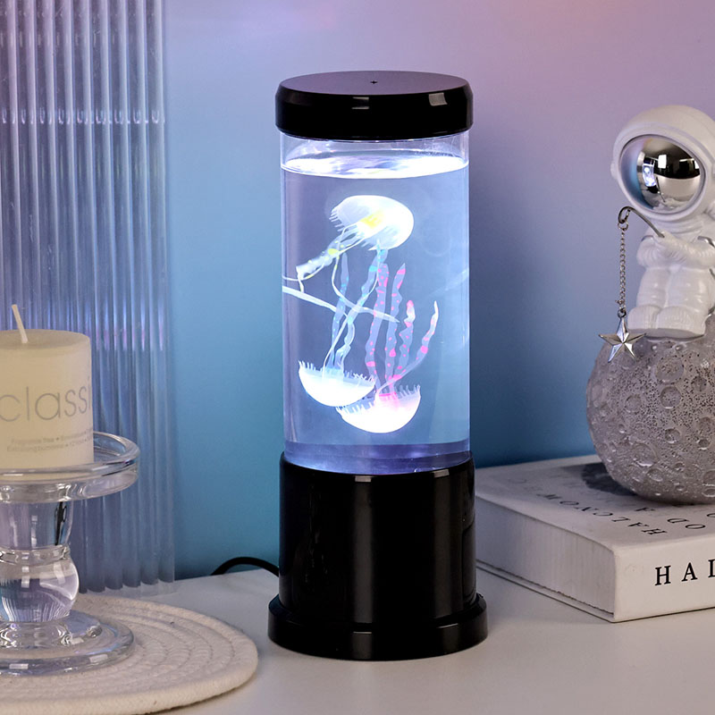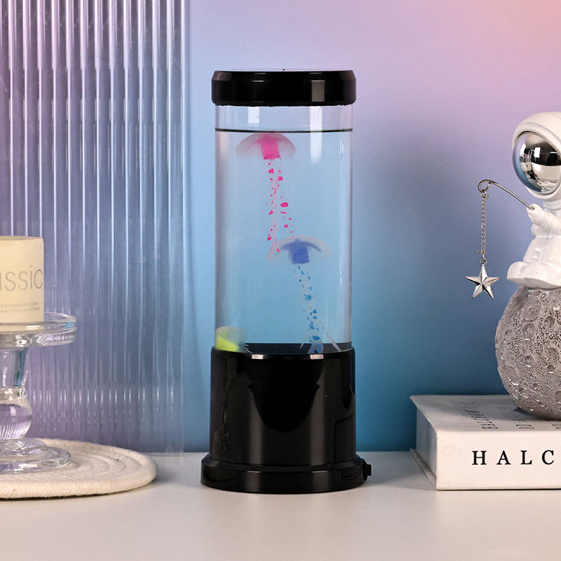 Lampa obsahuje realistickú medúzu s čiernym odtieňom, ktorá sa jemne vznáša v priehľadnej valcovej nádrži a vytvára upokojujúcu podvodnú atmosféru, ktorá premení každú miestnosť na pokojné oceánske útočisko.