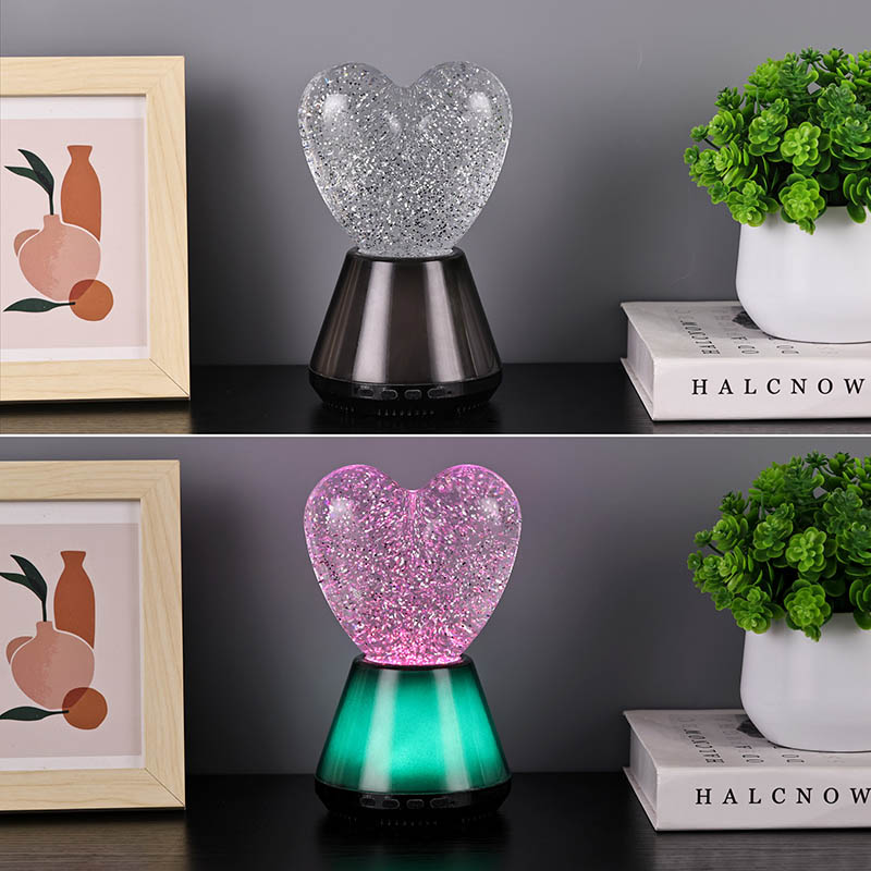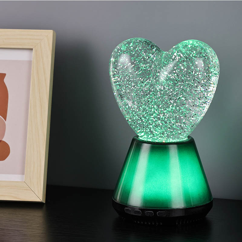Vnútro nočného svetla s LED trblietavým srdiečkom na ovládanie Bluetooth je naplnené tajomnou tekutinou, v ktorej pláva nespočetné množstvo trblietavých flitrov. Keď je lampa zapnutá, kvapalina bude pomaly prúdiť dovnútra sklenenej gule v tvare srdca, čím sa vytvorí snový efekt. Tieto flitre vyzerajú ako roztrúsené hviezdy, jemne sa vznášajú v tekutine a dávajú ľuďom pocit, že sú na hviezdnej oblohe. Či už je deň alebo noc, so srdiečkovým odtieňom dokáže deťom priniesť prekvapenie a radosť a umožní im popustiť uzdu fantázii v snovom osvetlení.