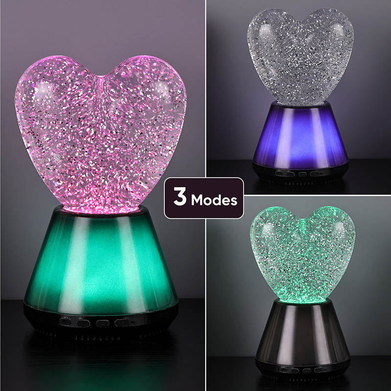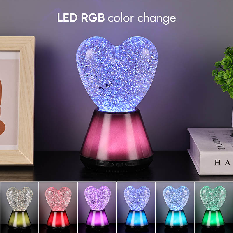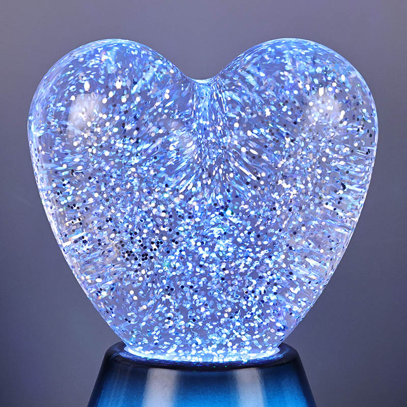 Transparentné trblietavé srdce + Transparentná RGB farebná základňa
