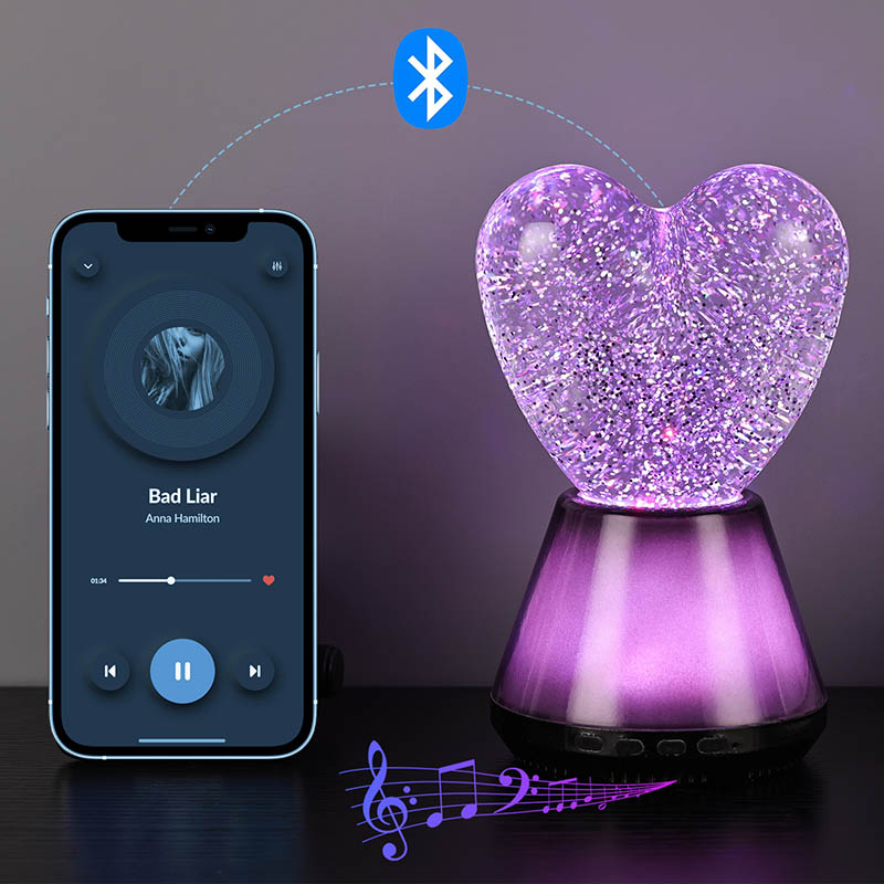 Bluetooth kontrolné led trblietavé srdiečkové nočné svetlo, ktoré kombinuje dizajn v tvare srdca, prehrávanie hudby cez Bluetooth, bezpečný a spoľahlivý plastový materiál, tekuté trblietky a premenu farieb, je špeciálny darček určený pre deti. Nie je to len praktické nočné svetielko, ale aj čarovné umelecké dielo, ktoré umožňuje deťom užívať si jednu krásnu noc za druhou pri teplom osvetlení a nádhernej hudbe.