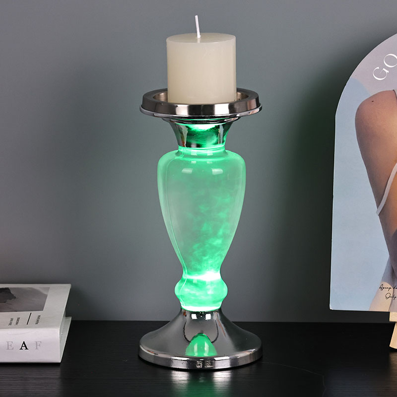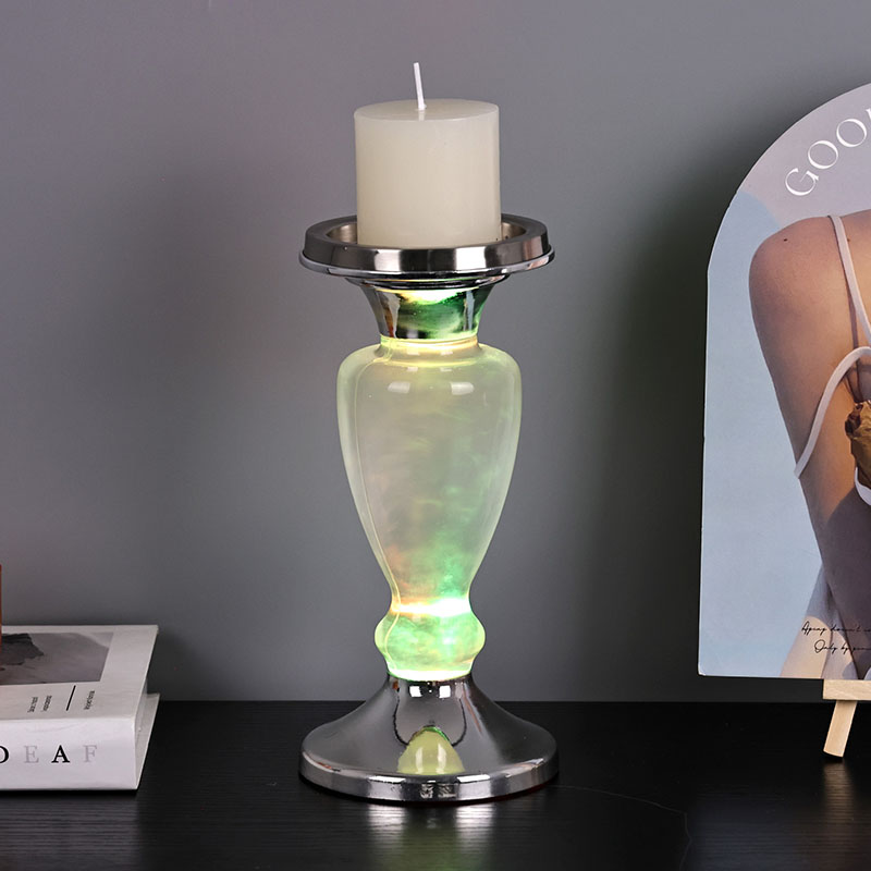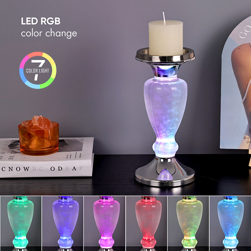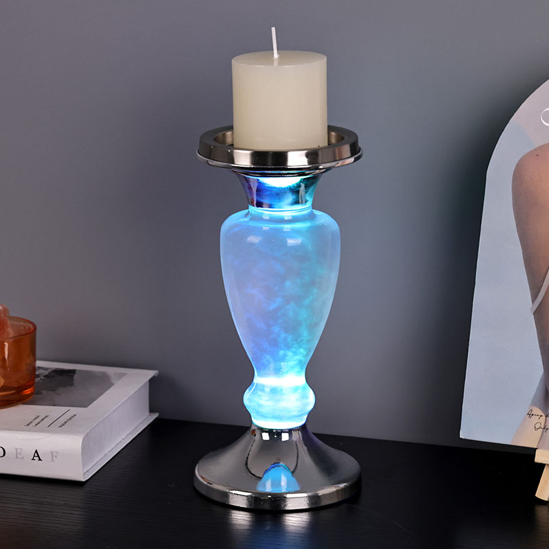 Novo navrhnuté zamračené nočné svetlo so sviečkou v európskom štýle má na vrchu dekoratívnu sviečku, ktorú možno zapáliť na osvetlenie, priehľadnú sklenenú fľašu v strede, ktorá obsahuje tekutinu so špecifickým materiálom. Vo vnútri kvapaliny to vyzerá ako oblaky a hmla plávajúce na oblohe, veľmi podobné simulačnej práci. Spodná časť je kovová základňa, ktorú je možné použiť s 3 AAA batériami. Zamračené nočné svetlo so sviečkou je veľmi vhodné na dekoráciu interiéru alebo hotela a možno ho umiestniť aj do detských izieb s dobrým liečivým účinkom na náladu.