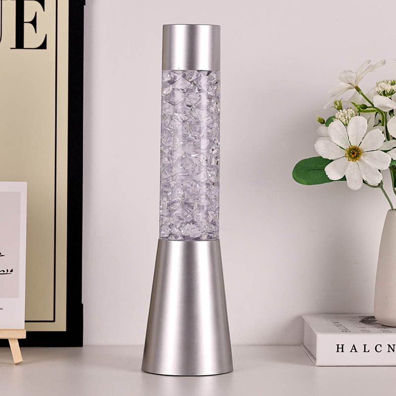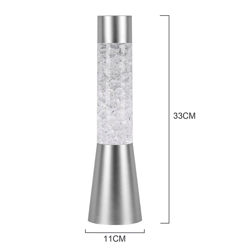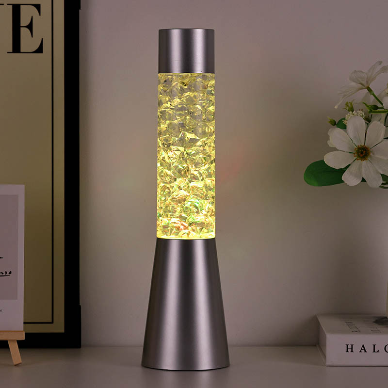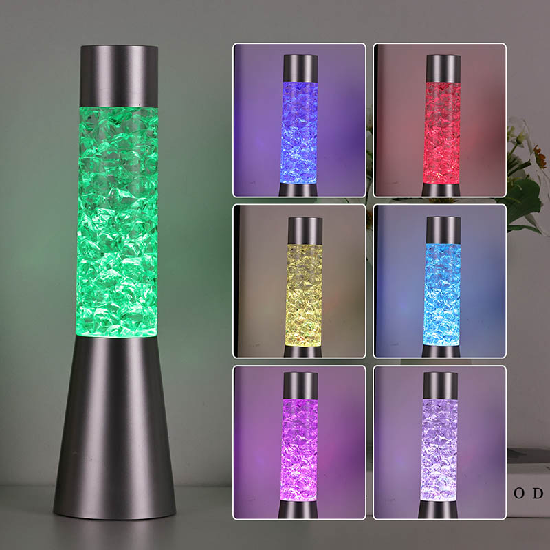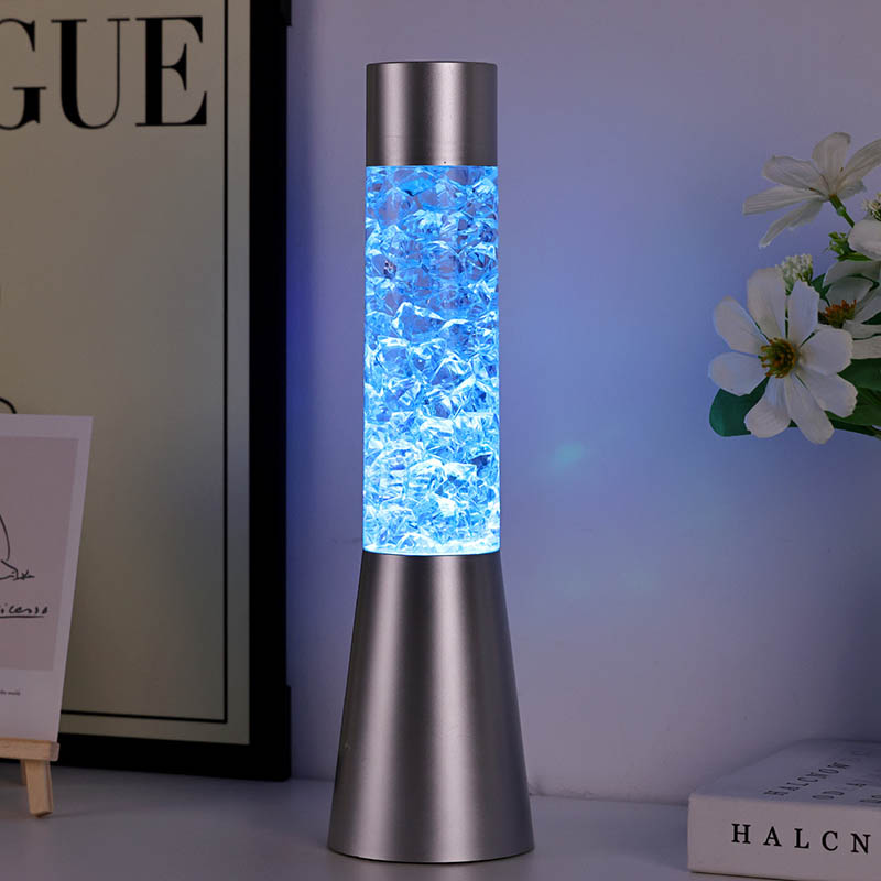 Tekuté trblietavé nočné svetlo meniace farbu s tvarom ľadu má elegantný a moderný dizajn s kovovou základňou a priehľadnou hornou časťou vyplnenou farebnými kúskami podobnými krištáľu. Základňa lampy je navrhnutá tak, aby bola stabilná a elegantná a dopĺňala akýkoľvek štýl domácej dekorácie. Priehľadná časť obsahuje farebné kúsky, ktoré sa jemne pohybujú a vytvárajú očarujúci vizuálny efekt. Lampa je dostupná v troch rôznych farebných variáciách – červenej, modrej a zelenej – čo vám umožňuje vybrať si perfektný odtieň, ktorý sa hodí k vášmu interiéru.