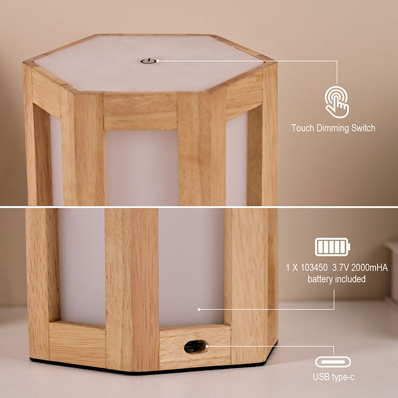 Toto stmievateľné drevené a plastové nočné svetlo je nielen praktickým osvetlením, ale aj vynikajúcou dekoráciou. Bezdrôtová led stolná lampa s batériou môže byť umiestnená na nočnom stolíku, aby vás sprevádzala