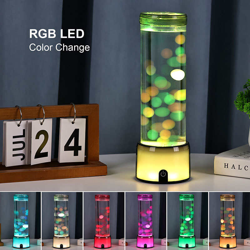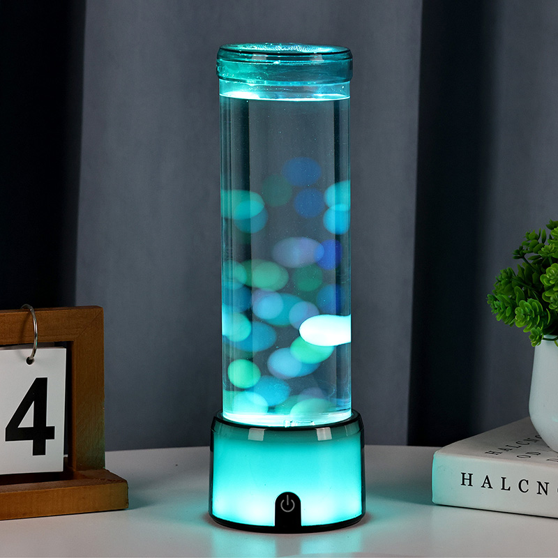 Popis produktu: Cylindrická simulovaná akváriová lampa s LED diódou meniacou farbu a žiariacou medúzou – vysoká, dekoratívne svetlo napájané jednosmerným prúdom