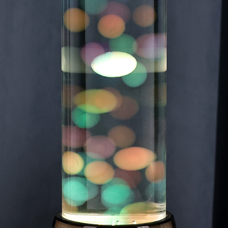 Vysoký, elegantný valcový tvar lampy jej dodáva moderný, minimalistický vzhľad, ktorý dopĺňa rôzne štýly interiéru. Jeho priehľadné telo umožňuje plnú viditeľnosť vnútorných prvkov, vrátane plávajúcej medúzy a trblietavých odrazov svetla. Kvapalina vo vnútri je špeciálne navrhnutá tak, aby simulovala prúdenie vody, čím sa zvyšuje realizmus plávajúceho pohybu. Keď LED diódy menia farby, zdá sa, že medúzy pulzujú životom a dodávajú scéne hĺbku a pohyb.