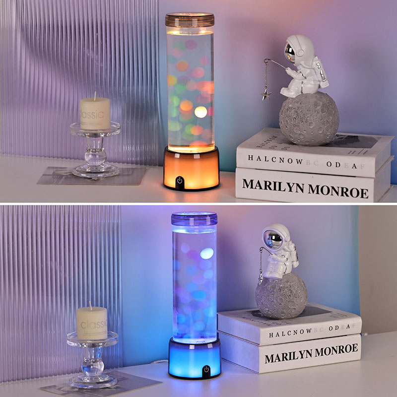 Prineste kúzlo oceánu do svojho domova s touto očarujúcou valcovou simulovanou akváriovou lampou. Nechajte žiariace medúzy a meniace sa farby vytvoriť pokojné útočisko, kamkoľvek ich umiestnite. Zažite pokoj, štýl a inováciu – všetko v jednom úžasnom dekoratívnom svetle.