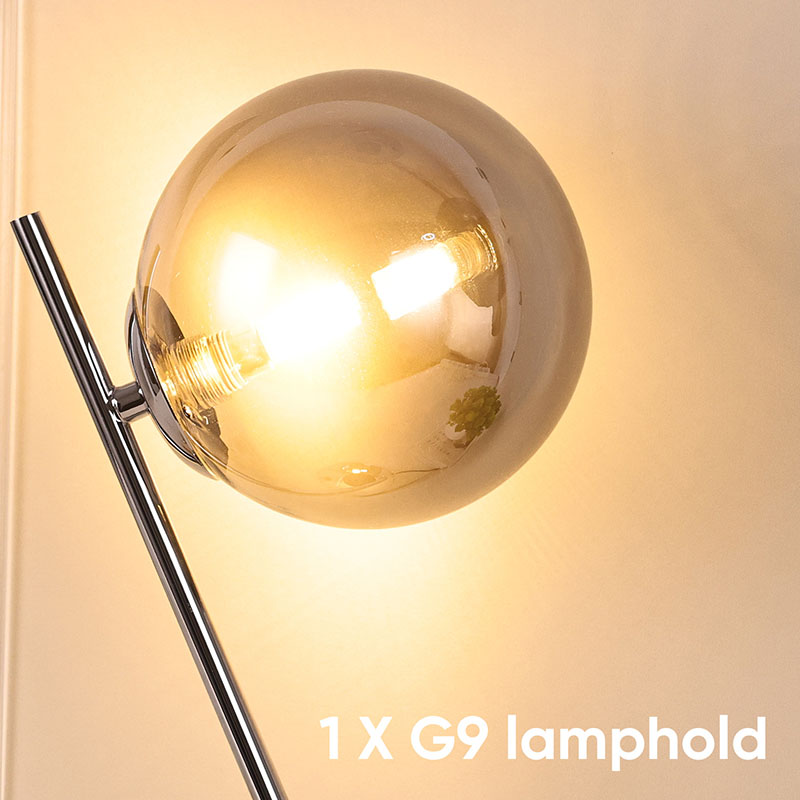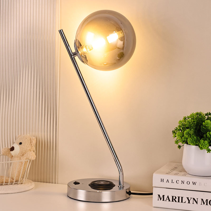 Stolná lampa je vyrobená zo sklenenej guľôčky na LED žiarovkách