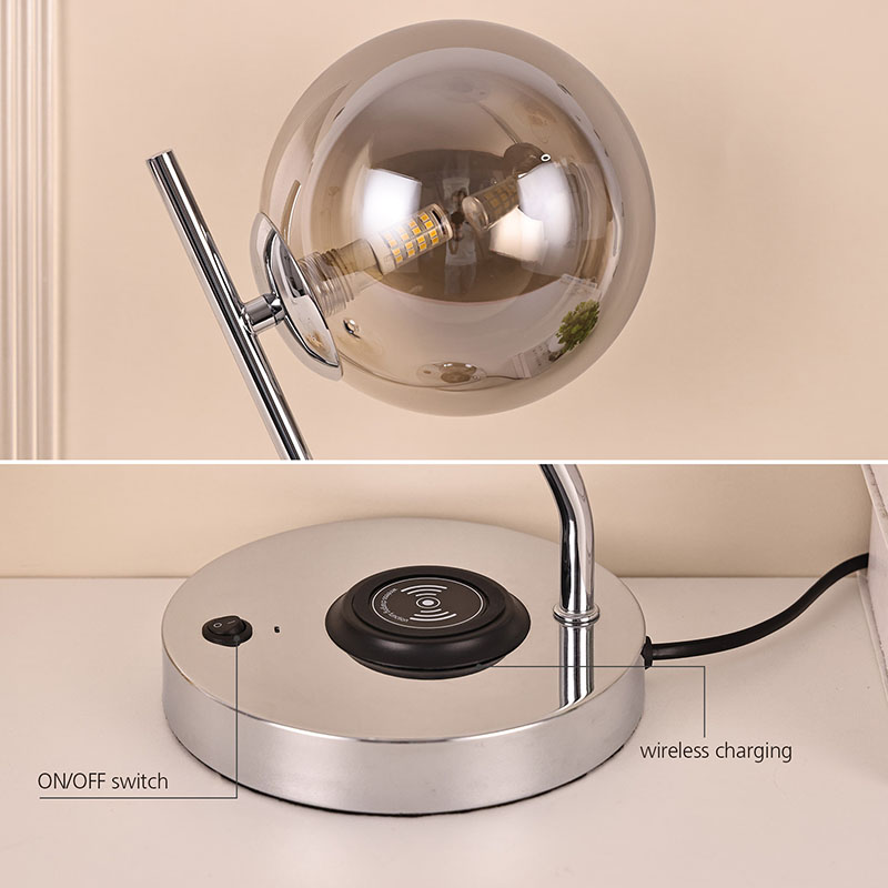 s 10W funkciou bezdrôtového nabíjania, vypínačom ON/OFF na základniNa tento účel je určená guličková stolná lampa z tmavého skla s bezdrôtovou nabíjačkou, ktorá obsahuje sklenený kryt, LED osvetlenie v teplých farbách a kovovú základňu pre bezdrôtové nabíjanie mobilného telefónu. Dokonale spája moderné technológie s teplým dizajnom a prináša vám nebývalé pohodlie a komfort