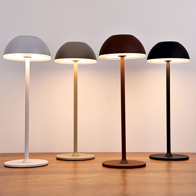 Hubová stolová lampa s batériou má jednoduchý dizajn pripomínajúci hríbovitý tvar, ktorý je veľmi vhodný na dekoráciu interiéru alebo kaviarne. Hubová stolová lampa s batériou je vyrobená z dvoch materiálov: kovu a plastu. Kovové materiály majú oveľa lepšiu textúru, ale cena je oveľa vyššia, zatiaľ čo plastové materiály sú lacnejšie, ale kvalita je relatívne dobrá. Tento produkt je náš patentovaný produkt. Ak bola stolová lampa Mushroom s batériou aktualizovaná na druhú generáciu, kovová základňa a telo lampy v spodnej časti sa dajú rozobrať pre lepšie šnúrky do topánok. Hubová stolová lampa s batériou sa skladá z troch typov svetiel: teplá farba, prirodzená farba a biela. Každý typ svetla dokáže nastaviť intenzitu svetla a dá sa použiť v rôznych prostrediach
