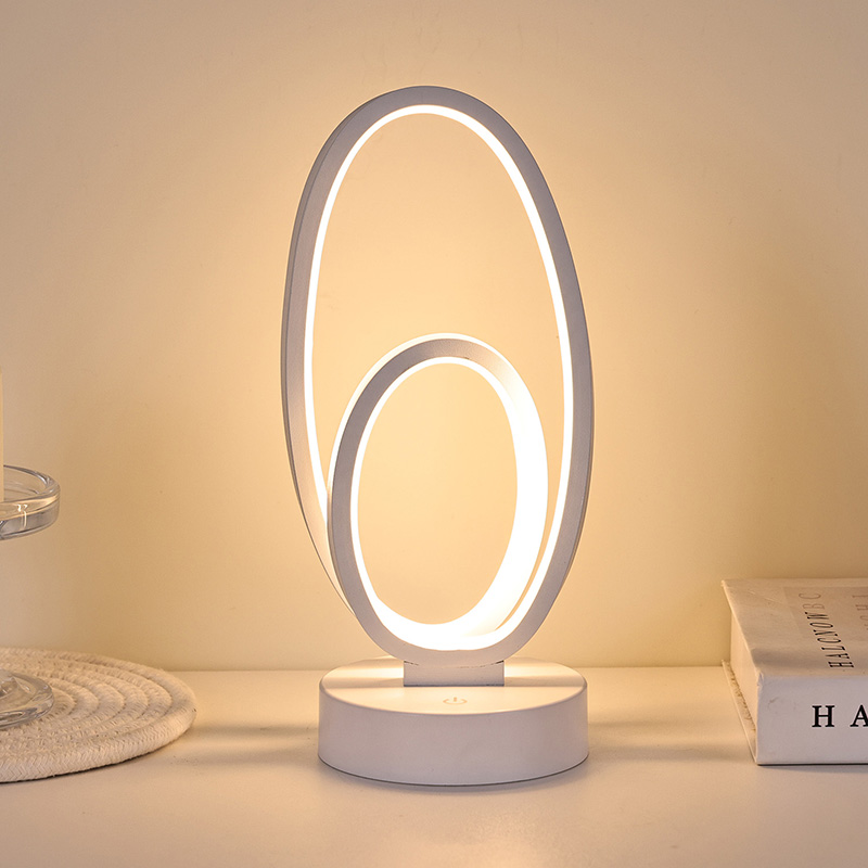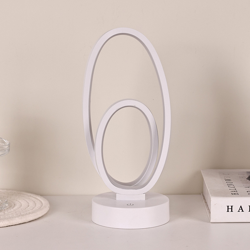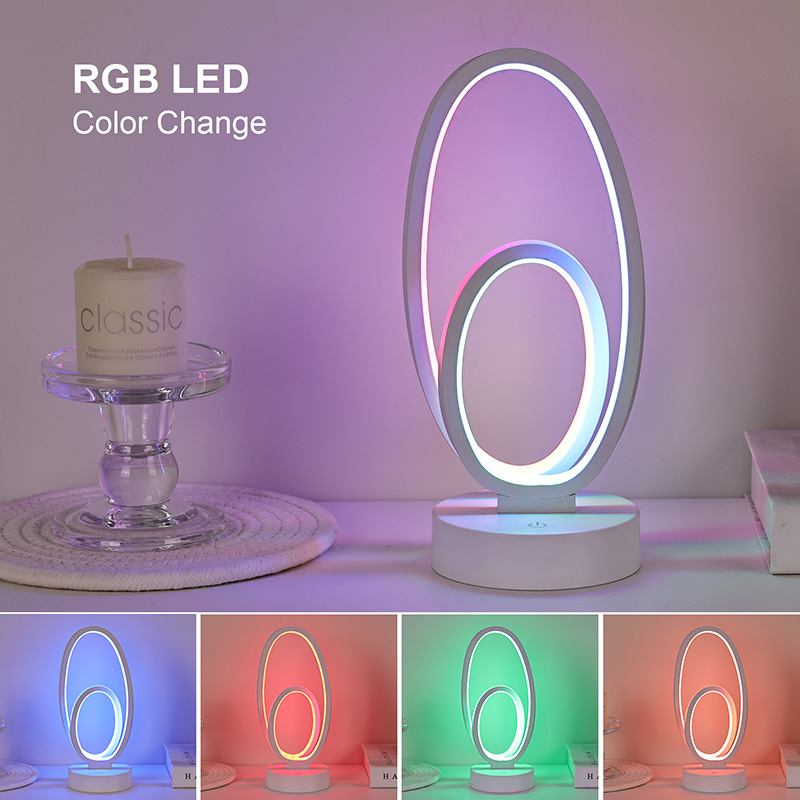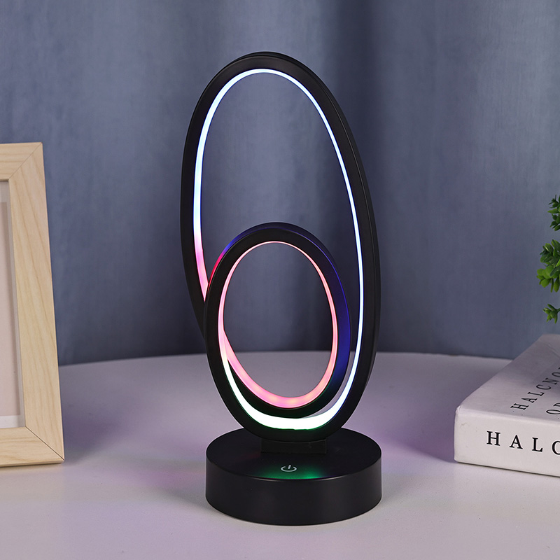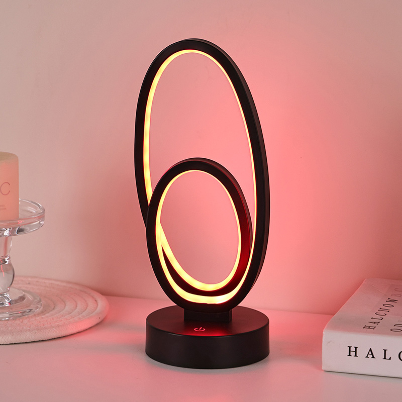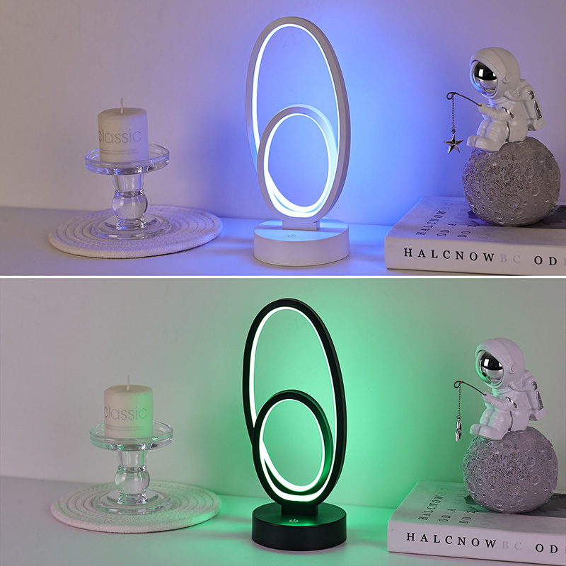 44 * 33 * V23,5 cmStolová lampa RGB s dvojitým kruhovým kruhovým tienidlom má dizajn s dvoma kruhmi s elegantnými obrysmi naznačenými minimalistickými líniami. Kombináciou kovu a vysokokvalitného plastu sa môže pochváliť výnimočnou textúrou a jemným dotykom. Okrem toho, že je to osvetľovací nástroj