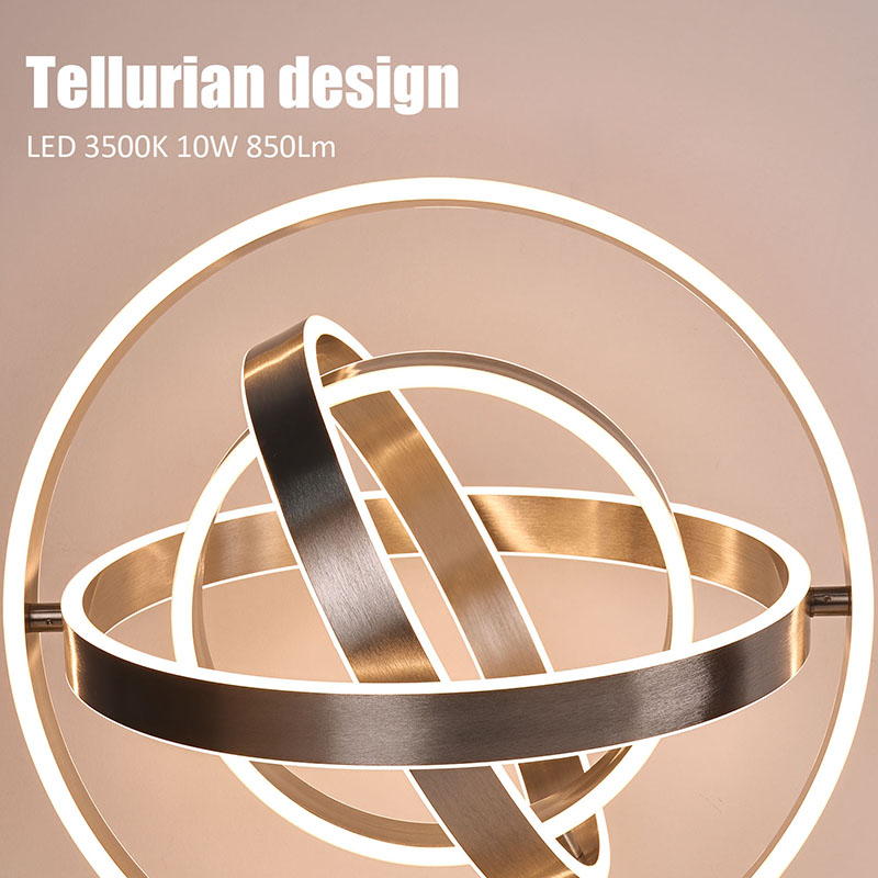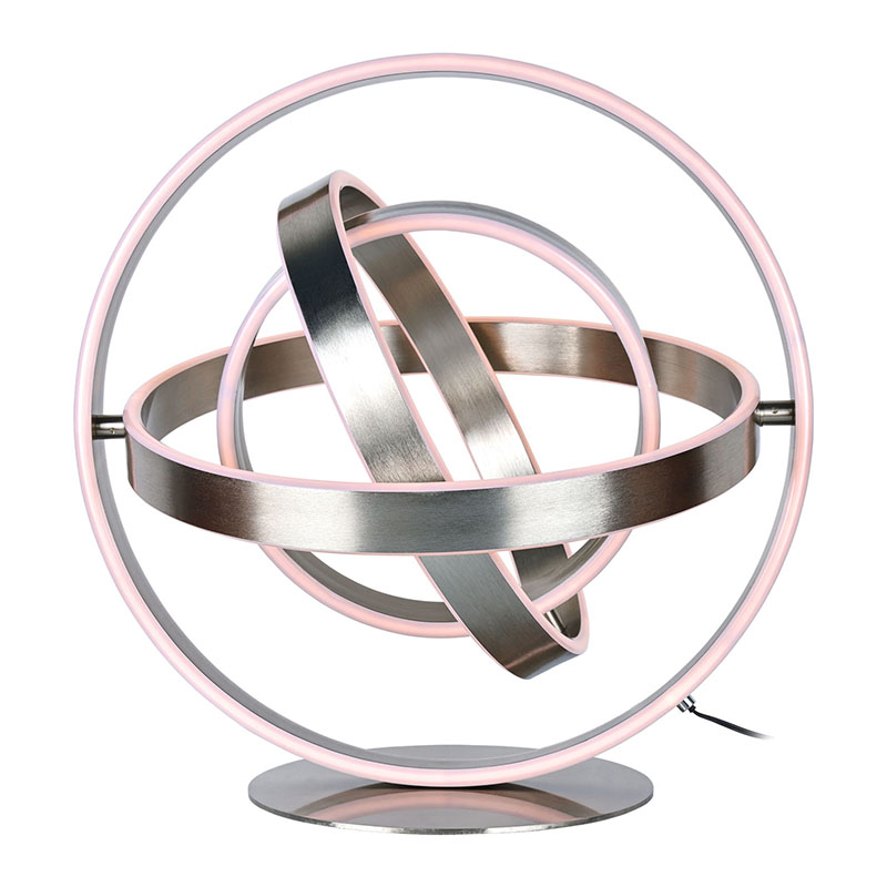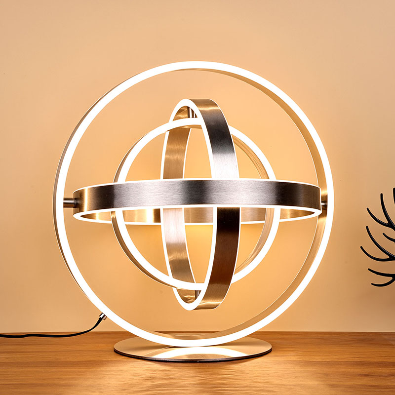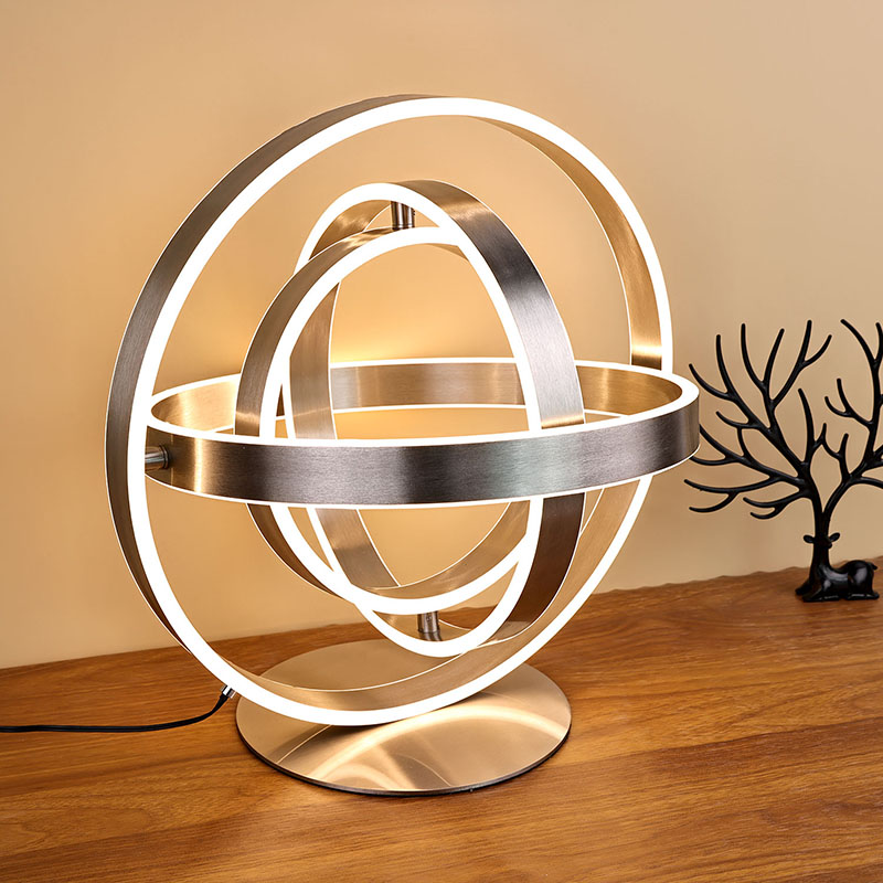 Thenádherná stolová LED lampapozostáva z viacerých prstencových LED lámp, pričom LED svetlá sú vyrezané do každého prstencového obvodu. Prstencový dizajn sa môže otáčať do guľového tvaru