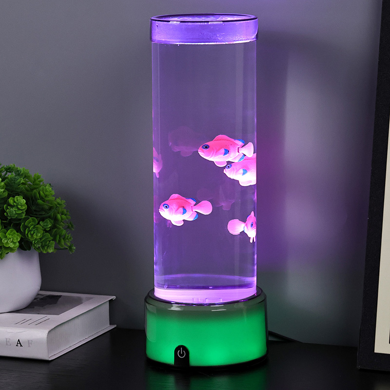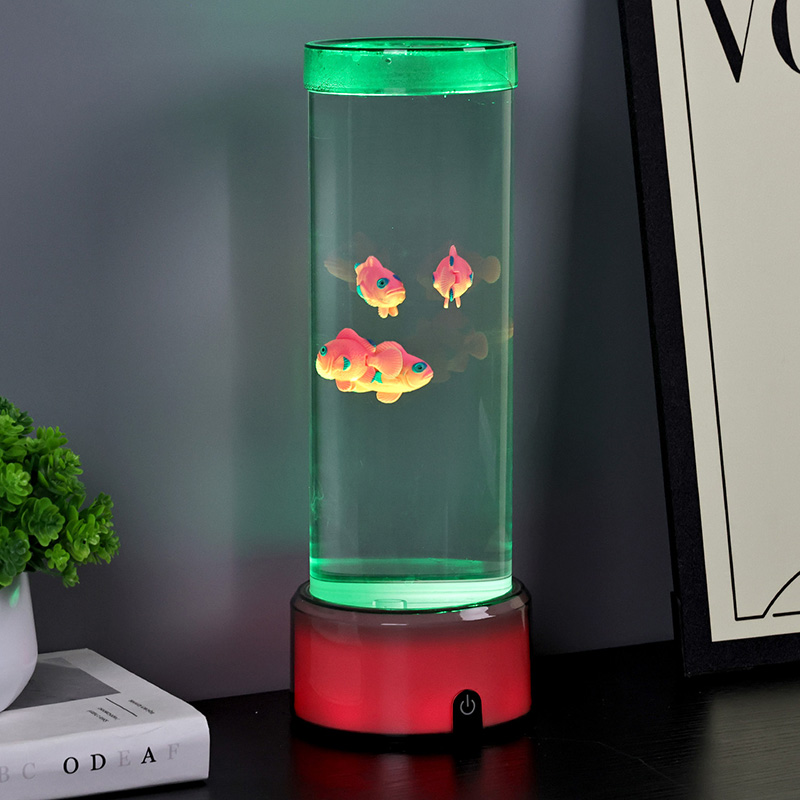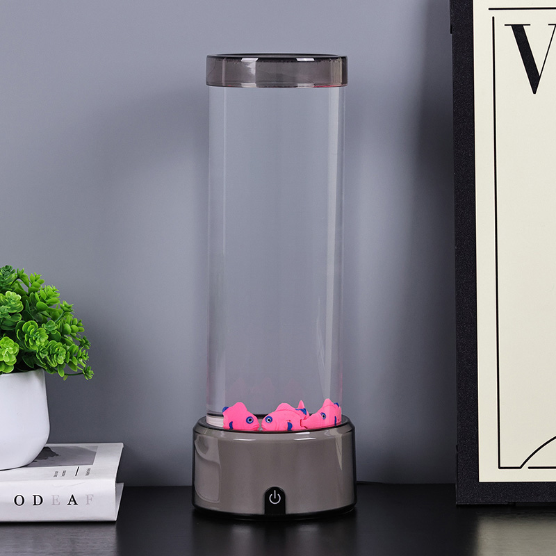 Dotknite sa prepínača výberu a plávajú medúzyLampa na ryby s medúzami s RGB základnou dekoratívnou lampou, novo navrhnutá detská hračka na pozeranie s valcovým dizajnom zadržiavajúcim vodu. Po naplnení vodou sa dovnútra umiestnia tri malé ryby. Lampa na ryby medúzy s RGB základňou môže plávať hore a dole, keď sa malý motor na dne otáča. Základňa má zároveň farebnú transformáciu RGB. Najväčšou výhodou tohto produktu je, že základ sa tiež mení s transformáciou farby. Celoplastové prevedenie je veľmi ľahké bez zadržiavania vody, čo je veľmi výhodné na prepravu. Napájanie lampy na ryby je zabezpečené pomocou USB typu C nízkeho napätia, čo je veľmi pohodlné