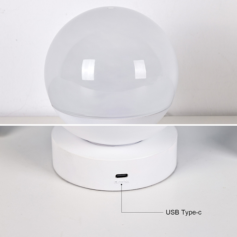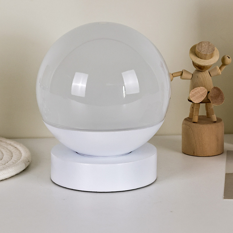 Celkový dizajn má zaoblenú guľu, pričom horná polovica je vyrobená z priesvitného matného materiálu, ktorý vyžaruje mäkké, jemné svetlo. Spodná polovica pozostáva z bielej základne pre stabilnú podporu s čistými a hladkými líniami. Jeho kompaktná veľkosť