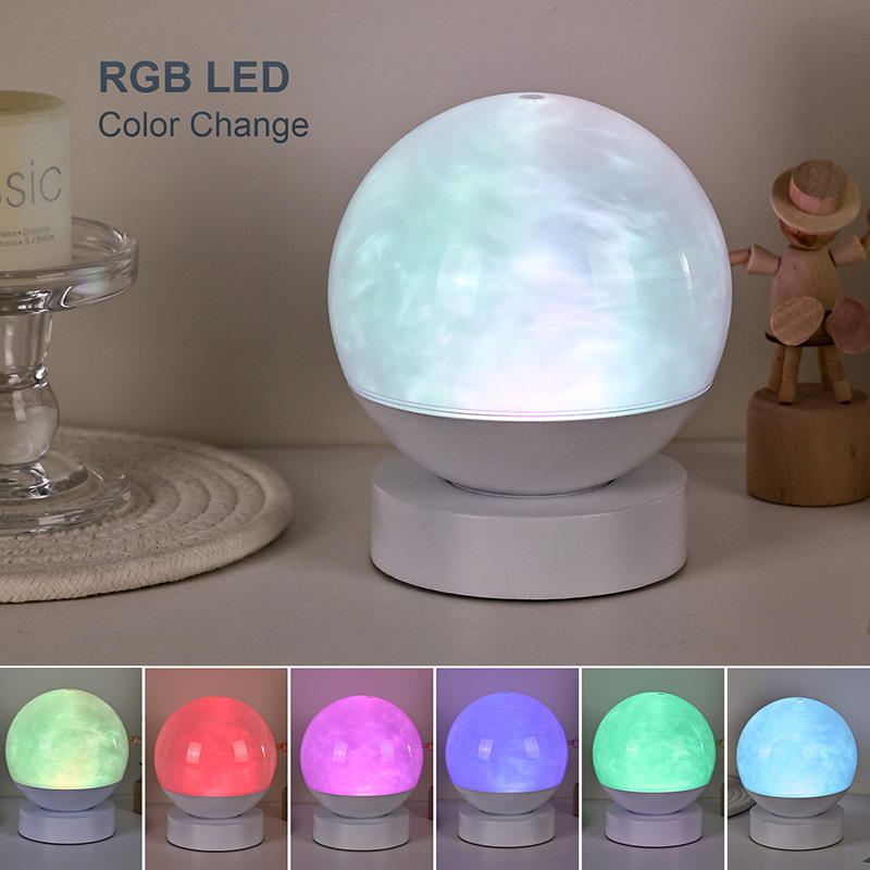 Pomocou pokročilej technológie svetelnej účinnosti LED v kombinácii s interným špeciálnym optickým dizajnom vytvára osvetlenie vo vnútri gule dynamický efekt pripomínajúci pomaly plynúce oblaky a hmlu. Farby sa plynule menia
