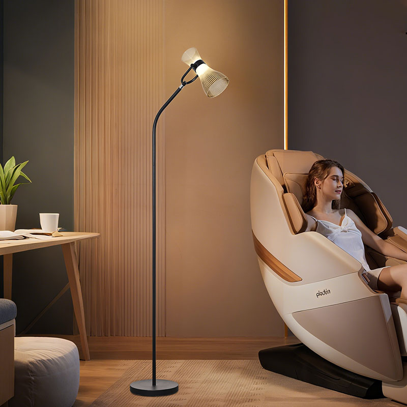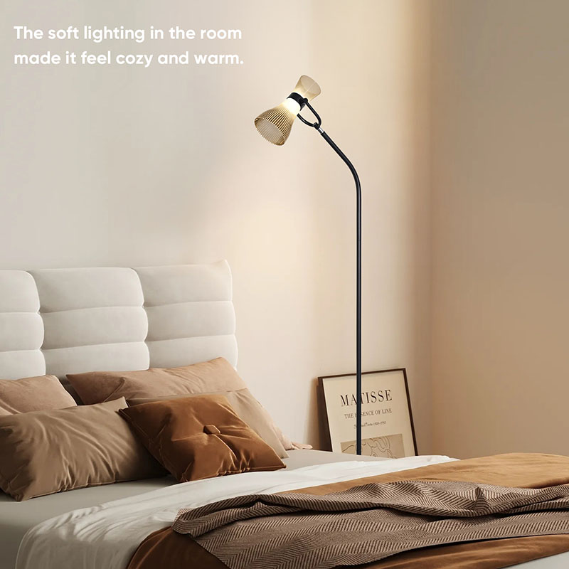 hladké a prirodzené línie, ktoré predstavujú ušľachtilú a elegantnú atmosféru. Sklenené tienidlo dodáva lampe nielen priehľadnú a čistú textúru, ale tiež účinne rozptyľuje svetlo, vďaka čomu je svetlo mäkšie a rovnomernejšie. Či už je moderná stojaca LED lampa so skleneným tienidlom umiestnená v obývačke, spálni alebo pracovni