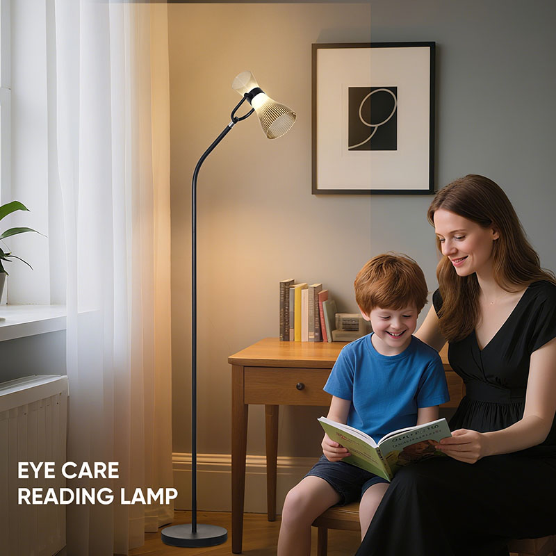 Moderná stojaca LED lampa so skleneným tienidlom je vybavená pokročilými LED svetelnými zdrojmi, ktoré vyžarujú jemné a jasné svetlo, účinne chránia vaše oči a znižujú únavu a nepohodlie spôsobené dlhodobým používaním očí.