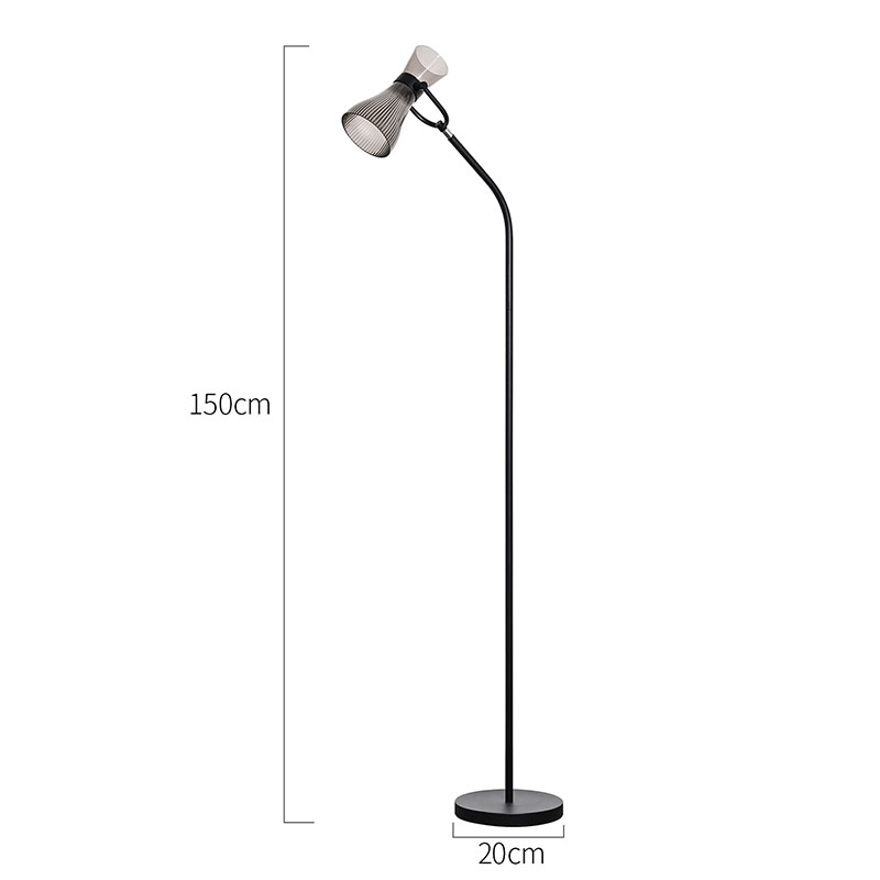 Nožný spínač stmievaniaModerná stojaca LED lampa so skleneným tienidlom má minimalistický dizajnový koncept s jednoduchým, ale štýlovým celkovým tvarom. Výška 150 centimetrov a priemer základne 20 centimetrov mu poskytujú dostatočnú prítomnosť bez toho, aby zaberal príliš veľa miesta. Kovová tyč a základňa sú jemne leštené, s hladkým a jemným povrchom,