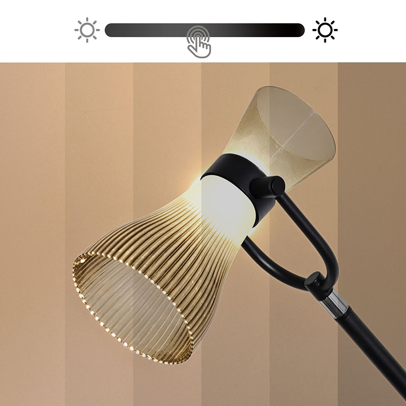zdroje majú aj funkciu nastaviteľného jasu. Jednoduchým ovládaním si môžete ľubovoľne nastaviť silu svetla podľa rôznych potrieb a scén. Či už potrebujete jasné svetlo na čítanie kníh, alebo chcete jemné osvetlenie na vytvorenie romantickej atmosféry, Moderná LED stojaca lampa so skleneným tienidlom ľahko splní vaše požiadavky.
