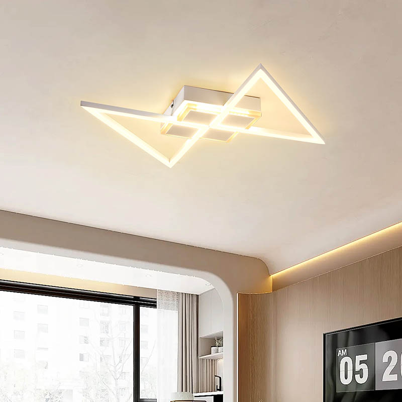 Predstavenie produktu: Moderný kovový diagonálny trojuholníkový vnútorný luster s teplým svetlom na použitie v hale