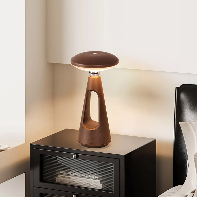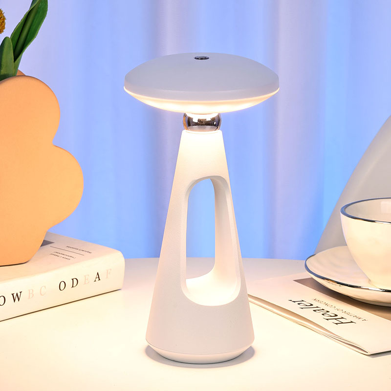 Dotknite sa prepínača stmievaniaHubová stolná LED lampa s nabíjateľnou batériou s jednoduchými a hladkými líniami a ergonomickým tvarom, hríbovitým dizajnom s ihlovým chvostom a kovovou stolovou LED lampou s teplým svetlom, nie je len praktickým nástrojom na osvetlenie,
