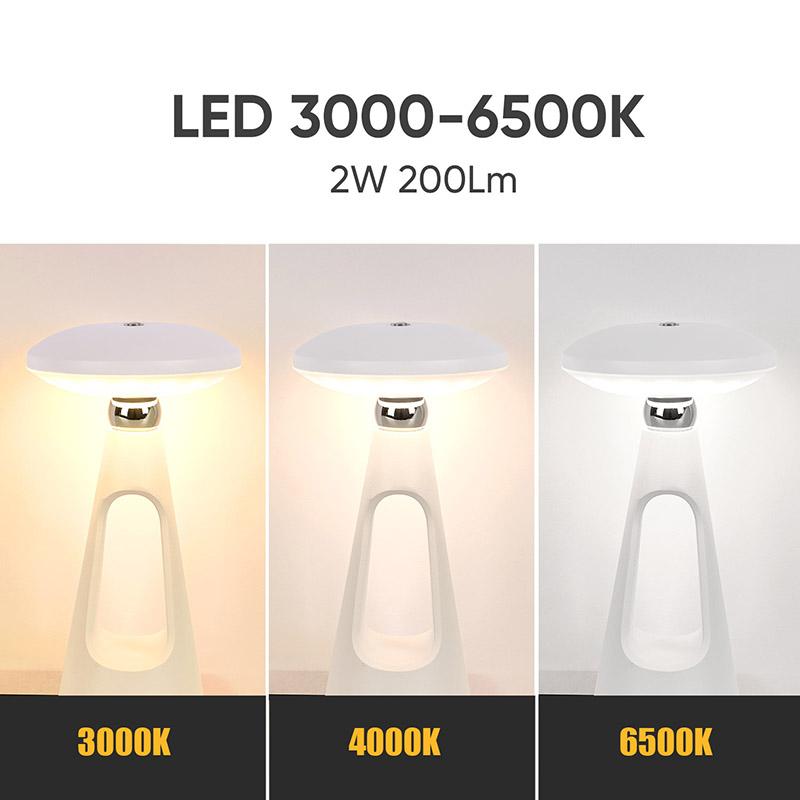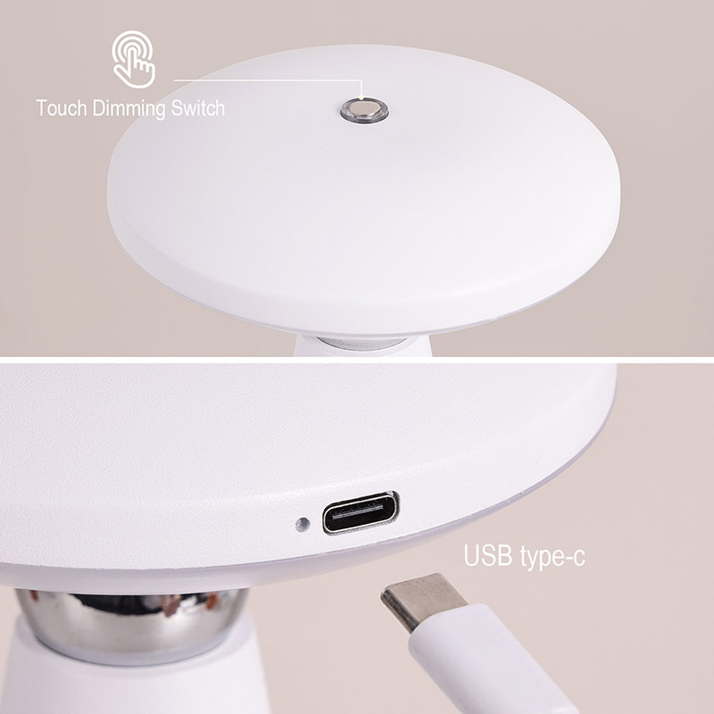 Mushroom LED stolová lampa s nabíjateľnou batériou je vybavená pokročilým LED svetelným zdrojom, ktorý vyžaruje jemné teplé svetlo a dokáže nastaviť intenzitu svetla. Nekonečné stmievanie môže účinne chrániť vaše oči. Prostredníctvom jednoduchých operácií