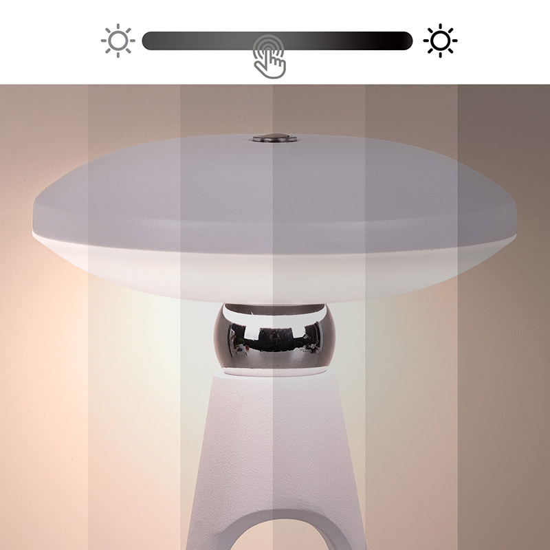 Na vrchnej časti tela svietidla sa nachádza praktické dotykové tlačidlo vypínača, ktorým je možné svetlo zapnúť alebo vypnúť. Dlhým stlačením tlačidla môžete nastaviť intenzitu svetla. Zároveň táto stolná lampa podporuje aj viacero spôsobov napájania, ktoré je možné pripojiť k USB alebo nabíjať pomocou vstavanej batérie.