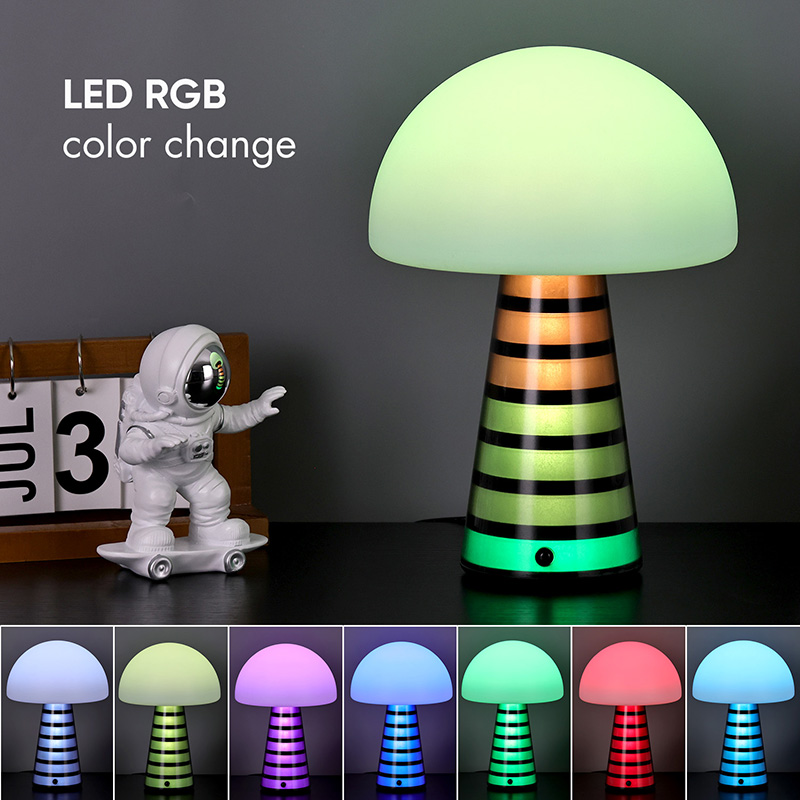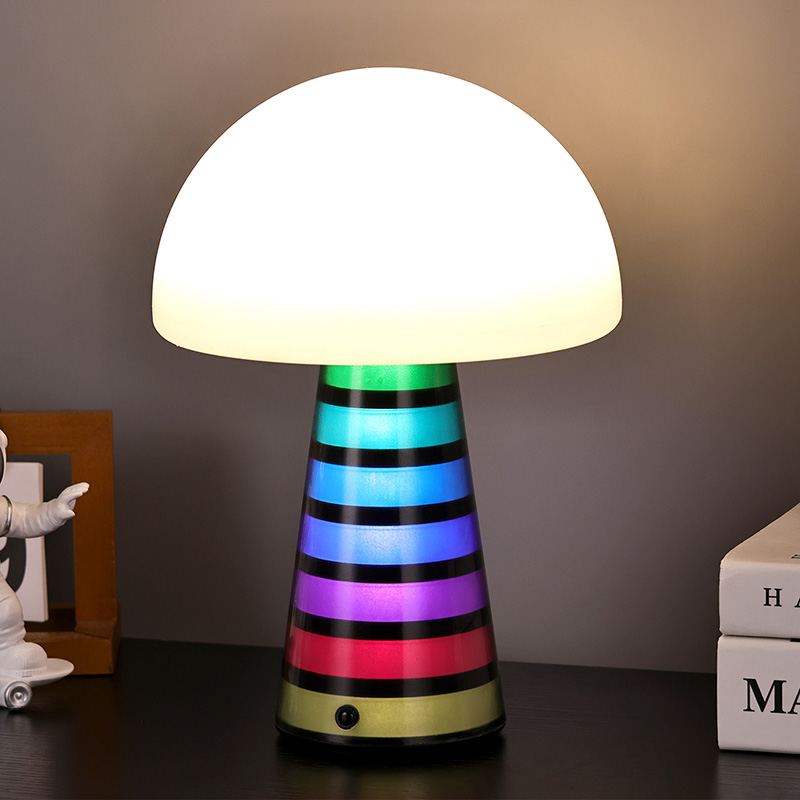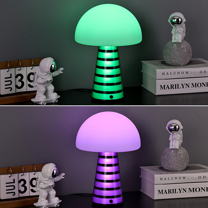 Digi RGB nočné svetloCelkový štýl stolovej lampy je roztomilý a PVC materiál v kombinácii s dizajnom v tvare hríbika je medzi deťmi veľmi obľúbený. Hlava lampy a stĺp lampy môžu meniť farbu a farby sa menia striedavo, vďaka čomu sú farby veľmi krásne. Stolová lampa je navyše dodávaná s nastaviteľnou intenzitou svetla v teplých farbách, ktorú možno použiť ako svetelnú lampu. Bude to veľmi harmonické v spálni v detskom štýle
