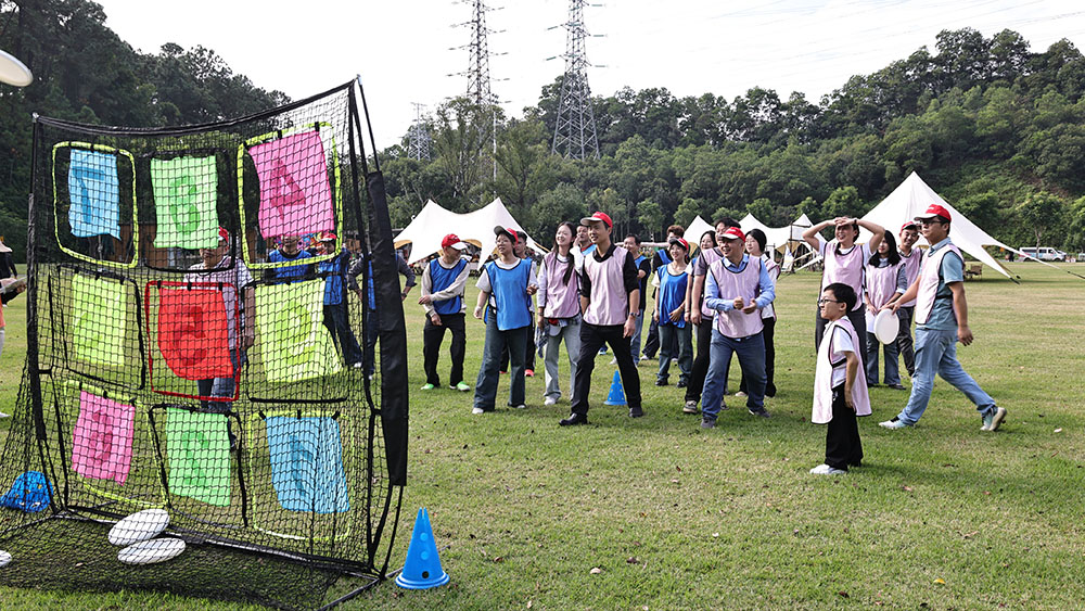Projekt päť: Frisbee Nine Palace Grid 🥏 Pravidlo: Hoďte frisbee zo vzdialenosti 3 metrov, zostreľte Nine Grid Plate a získajte 3 šance na osobu. Nazbierajte vysoké skóre, aby ste vyhrali. Čas: 20 minút. Zvýraznenie: Súťaž presnosť verzus šťastie!