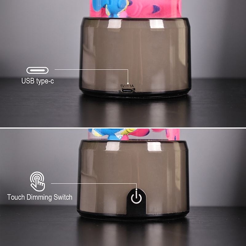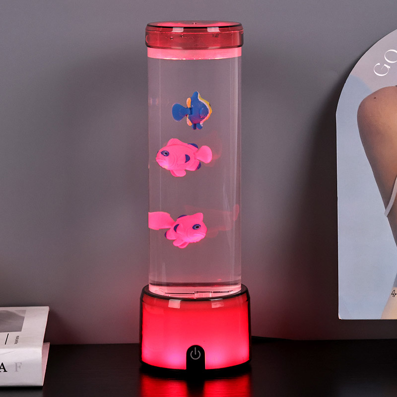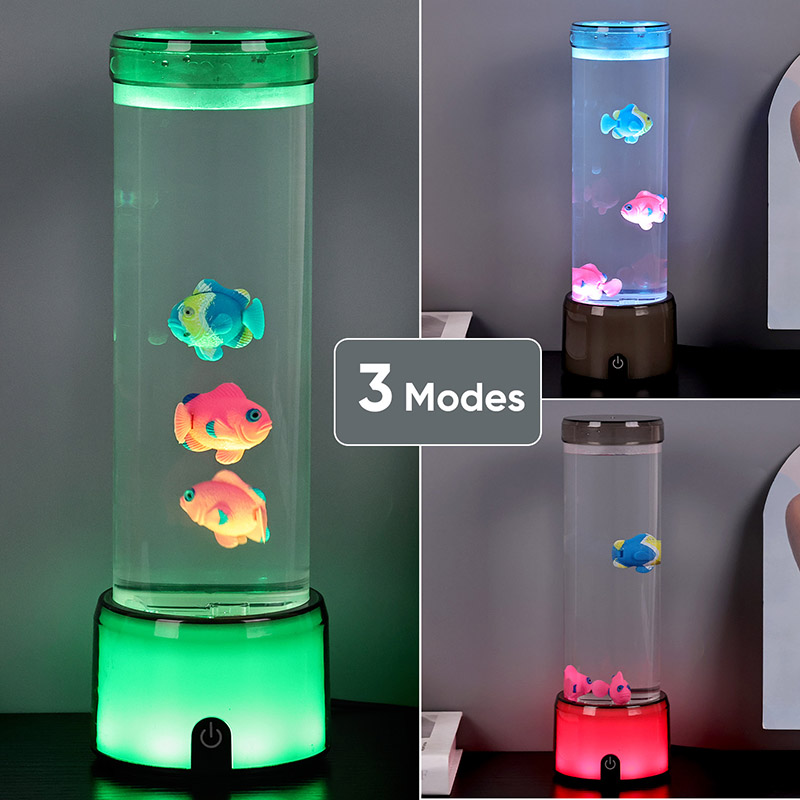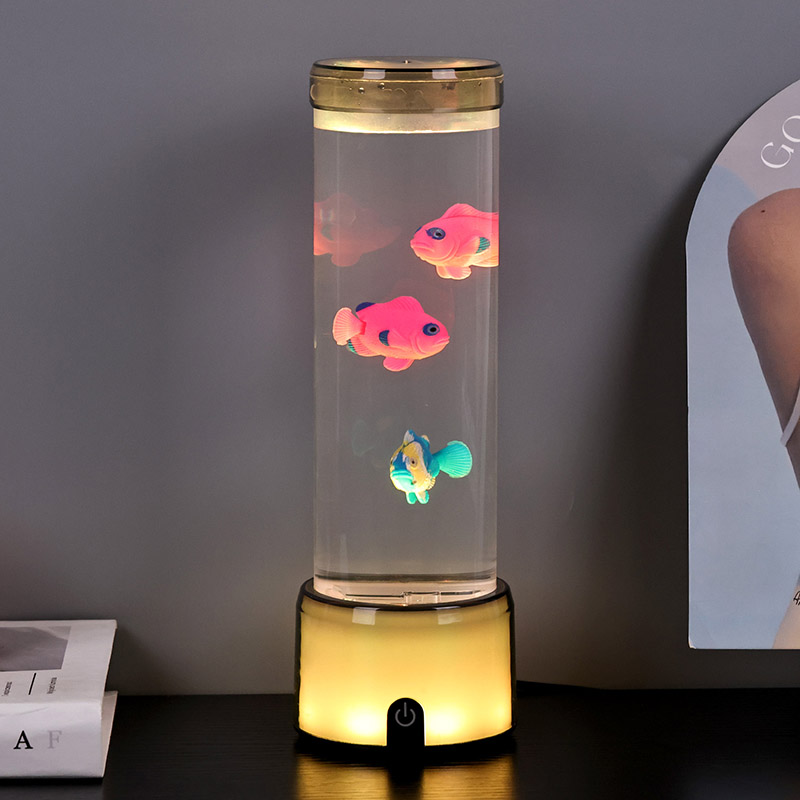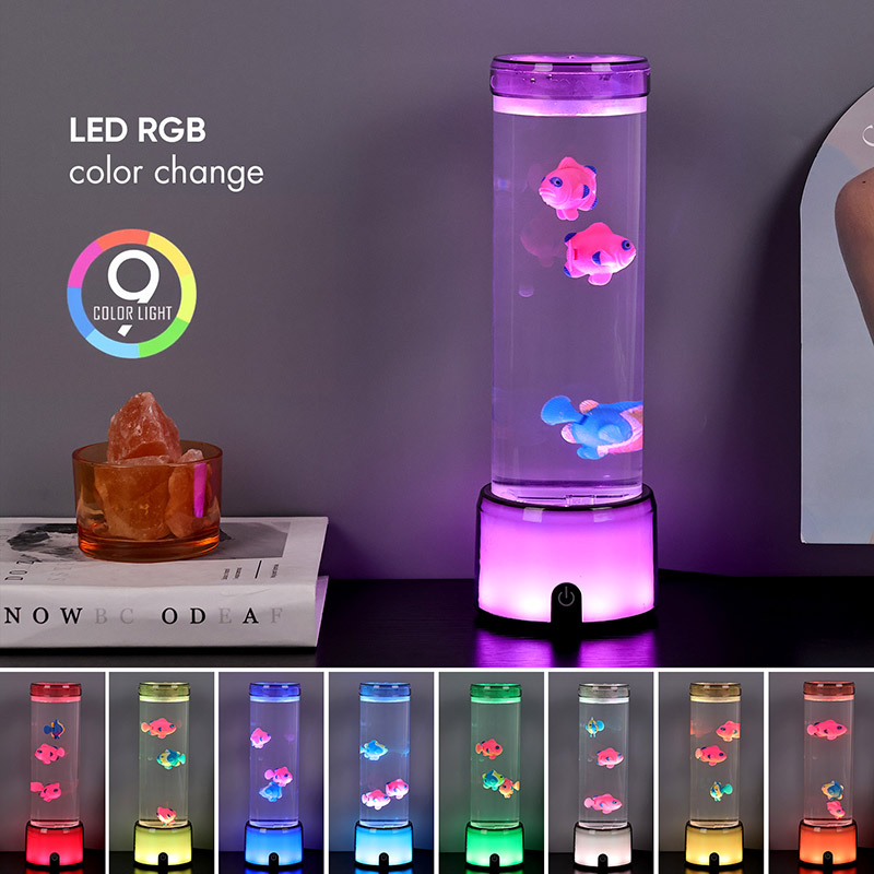 Základňa rybej lampy je vybavená priehľadnou základňou meniacou farbu RGB, ktorá dokáže vyžarovať viac farieb svetla, vďaka čomu má celé telo lampy farebný efekt. Farba po zapnutí vypínača