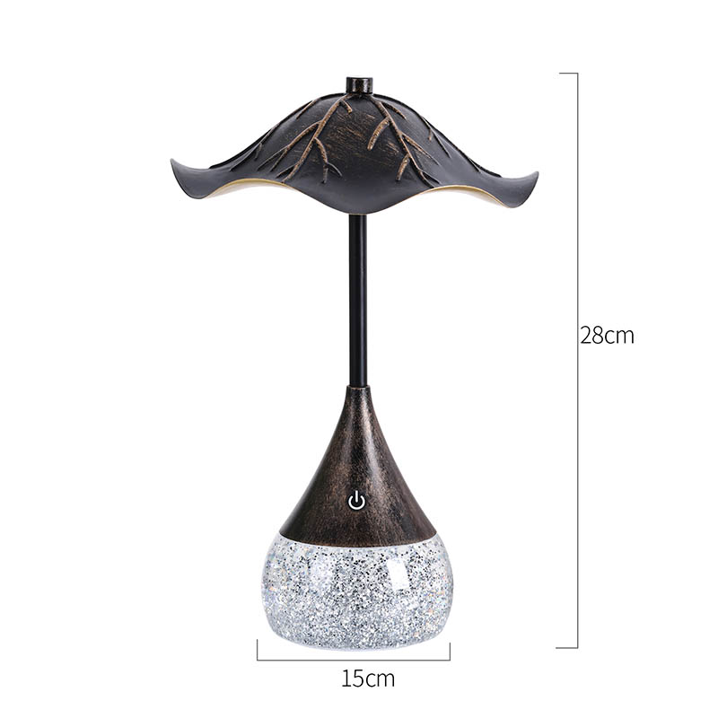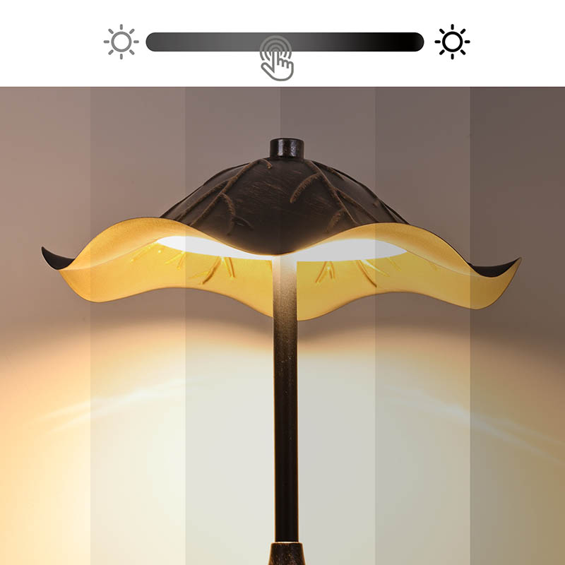 Vrcholom tejto lampy je jej nápadný dáždnikový vrchol, ktorý pripomína jemnú čiapku húb zdobenú zložitými vzormi zlatého listu. Tento dizajn nielenže dodáva do vášho okolia dotyk krásy inšpirovanej prírodou, ale slúži aj ako funkčný difúzny kryt pre zdroj svetla, čím vytvára mäkkú, dokonca žiaru, ktorá je príjemná pre oči.