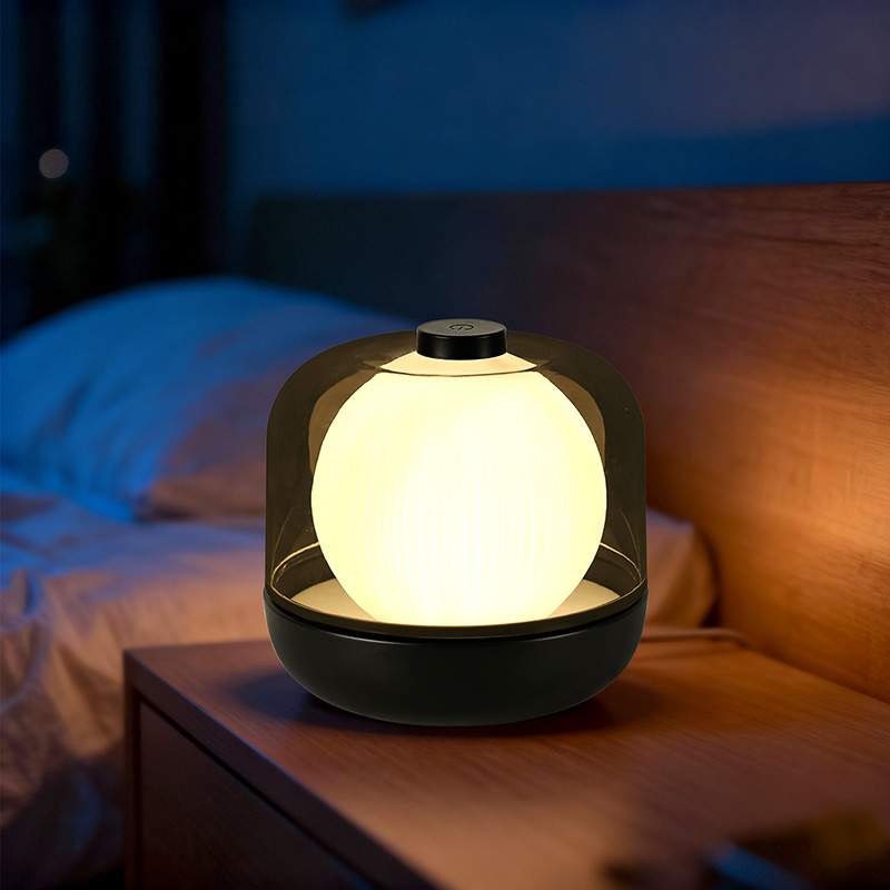 Vonkajšie tienidlo, vyrobené z vysoko priehľadného, ekologického materiálu, nielenže chráni vnútorné komponenty, ale aj rovnomerne rozptyľuje svetlo pre jemnú žiaru bez oslnenia. Pevná základňa zaisťuje stabilitu, zatiaľ čo intuitívne dotykové ovládanie na vrchu umožňuje jednoduché nastavenie jasu, farebných režimov,