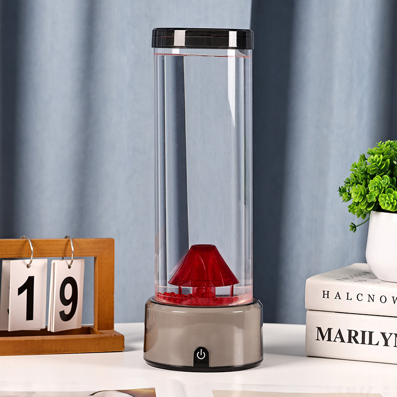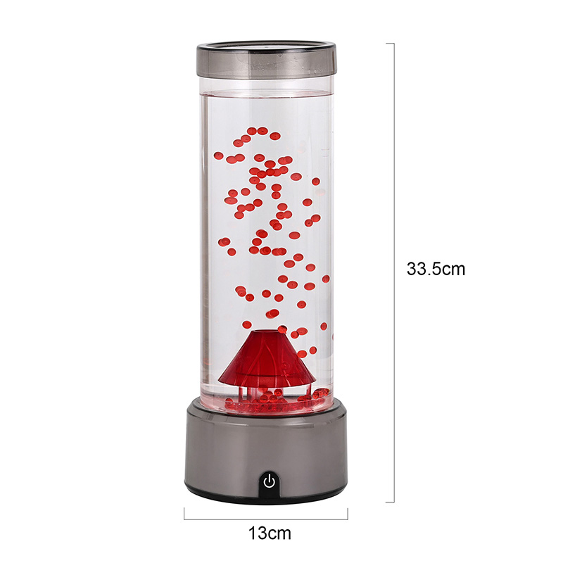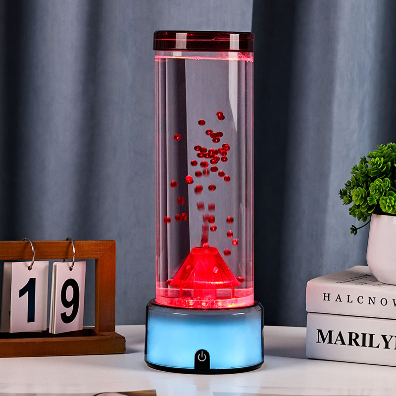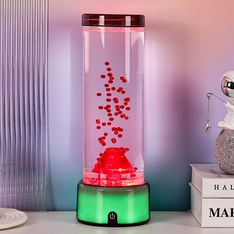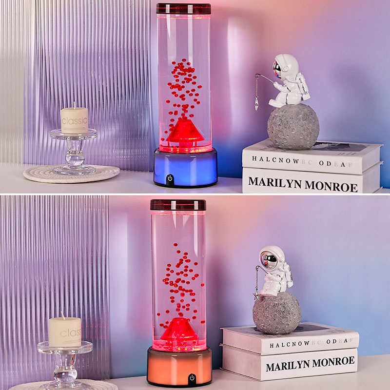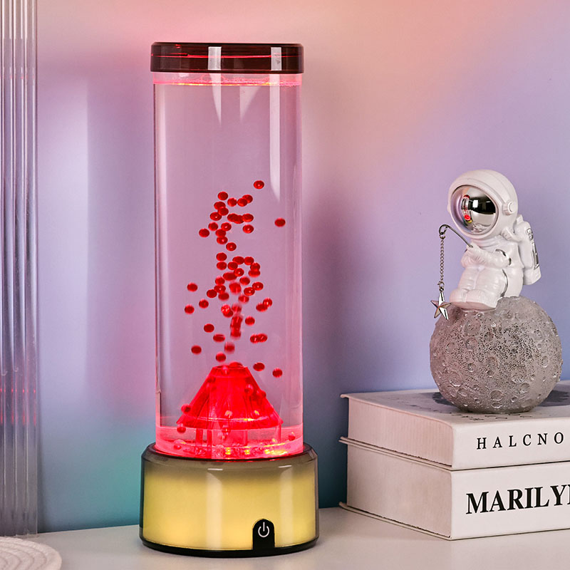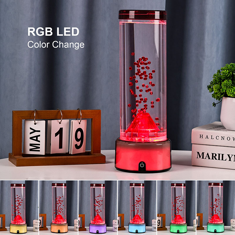 Táto LED lampa v tvare sopky, navrhnutá s precíznou pozornosťou k detailu, má valcovú kvapalinovú komoru naplnenú čírou tekutinou a plávajúcimi červenými časticami, ktoré pri aktivácii simulujú sopečnú erupciu. Základňa lampy žiari žiarivými RGB svetlami s meniacimi sa farbami, zatiaľ čo centrálna štruktúra sopky pulzuje ohnivým osvetlením, ktoré napodobňuje skutočnú erupciu. Zároveň sa v stĺpci tekutiny pôvabne vznášajú jemné dekorácie podobné medúzam, ktoré dodávajú neskutočnú podvodnú atmosféru. Spoločne tieto prvky vytvárajú očarujúcu vizuálnu podívanú, ktorá spája silu prírody s eleganciou moderného dizajnu. Dizajn a estetický vzhľad RGB lampa s meniacou sa farbou má výšku približne 12 palcov, vďaka čomu je ideálna na umiestnenie na stoly, nočné stolíky, police alebo ako výrazný dekoratívny kúsok v obývacích izbách, spálňach alebo dokonca triedach. Jeho elegantná, moderná silueta obsahuje priehľadnú valcovú trubicu vyrobenú z vysoko kvalitného plastu odolného voči rozbitiu, ktorý zaisťuje odolnosť a bezpečnosť. Horné veko je bezpečne utesnené, aby sa zabránilo úniku, zatiaľ čo základňa je vyrobená z hladkého plastu s matnou povrchovou úpravou so vstavaným ovládacím panelom.
