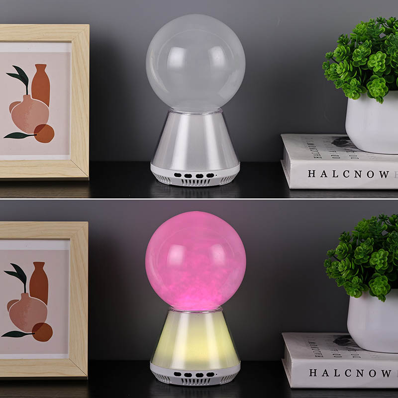 RGB LED trblietavá lampa s bluetooth ovládaním, ktorá kombinuje prúdenie tekutiny v sklenenej guľôčke do oblačného stavu, synchronizované zmeny farieb medzi základňou a tekutinou a Bluetooth pripojenie na prehrávanie hudby, je navrhnuté tak, aby pre vás vytvorilo snový svet. RGB LED trblietavá lampa s bluetooth ovládaním je nielen praktickým nočným svetlom, ale aj magickým umeleckým dielom.