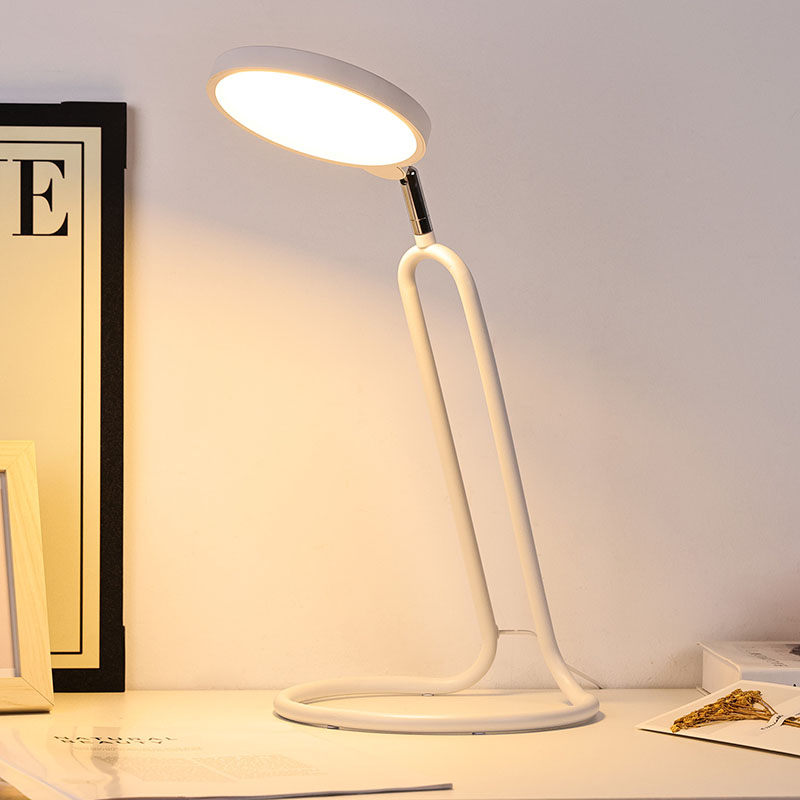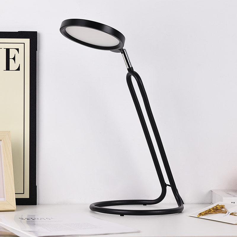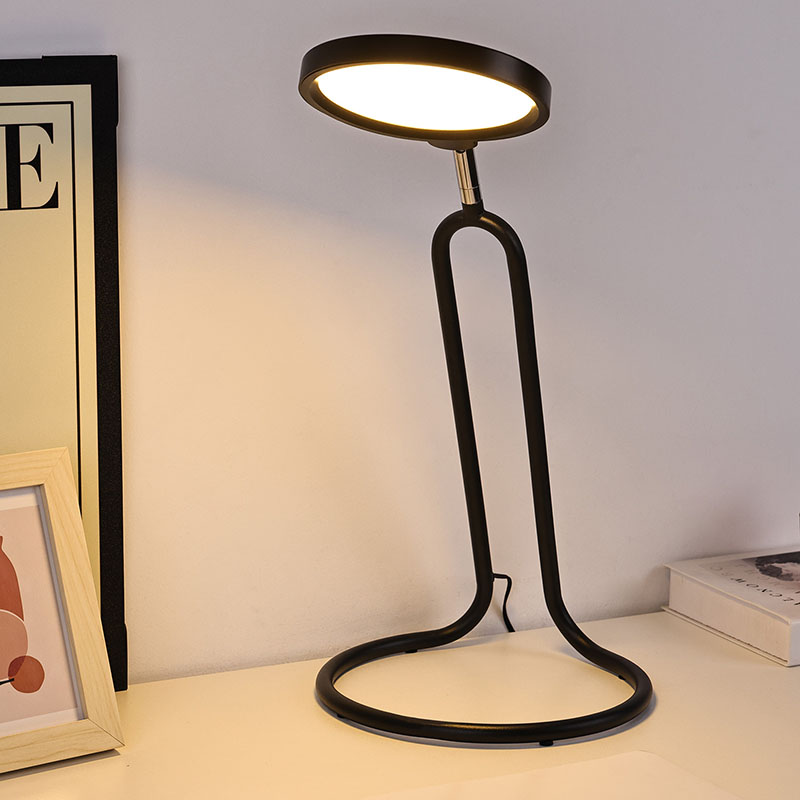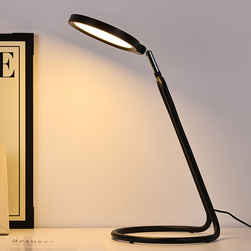 Jednoduchá lampa LED Desk Lamp má výraznú čiernu a bielu farebnú schému so zakriveným kovovým stojanom, ktorý podporuje okrúhlu, bielu alebo svetlo žltú tienidlo. Tento dizajn vyzerá nielen fantasticky, ale slúži aj na zabezpečenie mäkkého okolitého osvetlenia, ktoré premieňa vašu izbu na útulné útočisko.