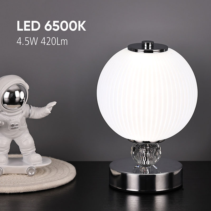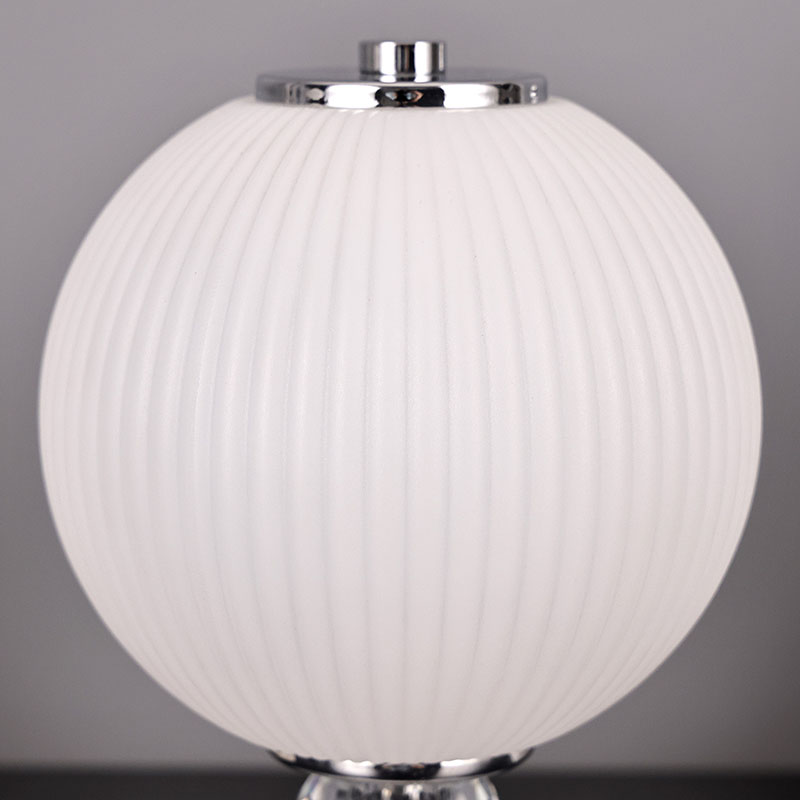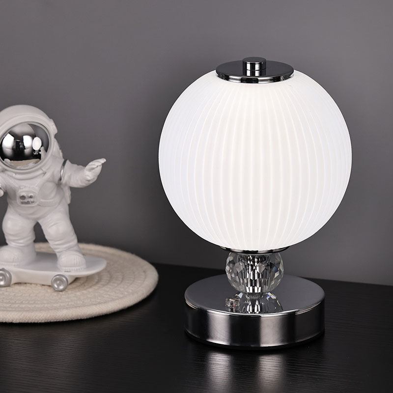 Najväčšou prednosťou tejto mini stolovej lampy je jej jedinečný guľovitý dizajn tienidla. Tienidlo je vyrobené z kvalitného skleneného materiálu s hladkým a jemným povrchom a jemným leskom. Dizajn sférického tienidla dodáva lampe nielen čistú a ušľachtilú textúru, ale umožňuje aj rovnomernejšie vyžarovanie svetla, čím vytvára jemnú a teplú atmosféru.