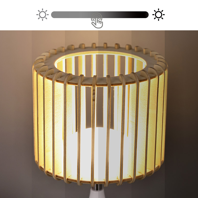Stolová LED lampa New Design je vyrobená z vysokokvalitných plastových materiálov a lamiel z prírodného dreva, aby vydržala. Pevná základňa zaisťuje stabilitu, takže ho môžete bez obáv umiestniť na akýkoľvek povrch. Odolná konštrukcia znamená, že táto lampa vydrží každodenné používanie, vďaka čomu je spoľahlivým a dlhotrvajúcim doplnkom vášho interiéru.