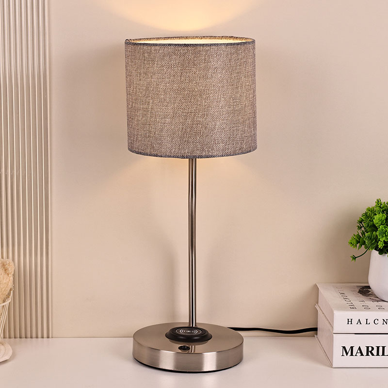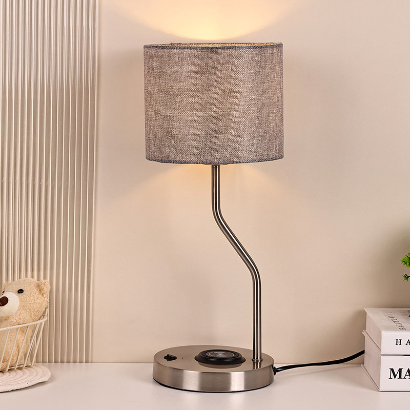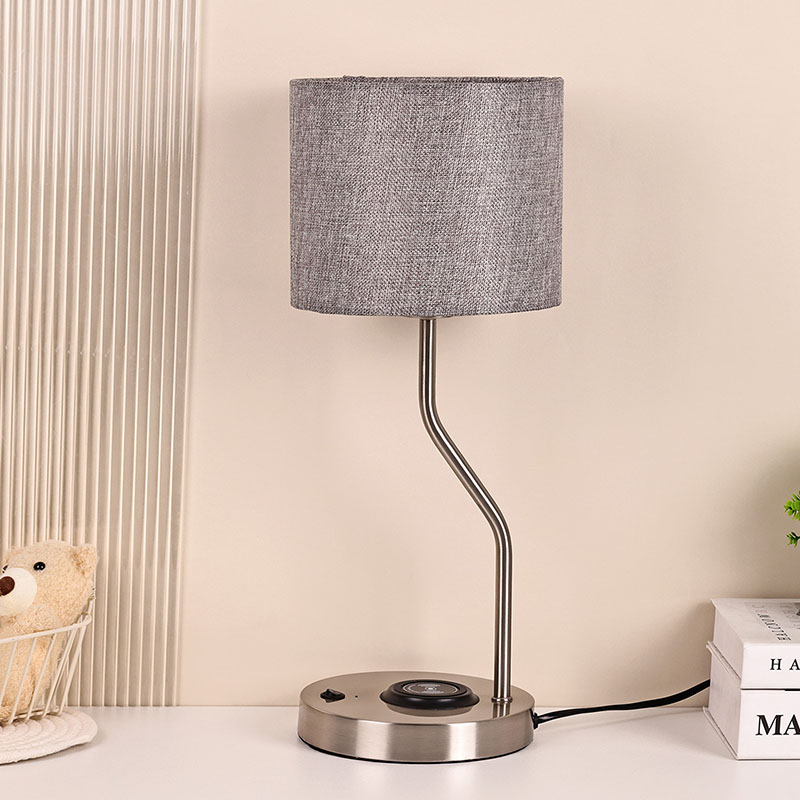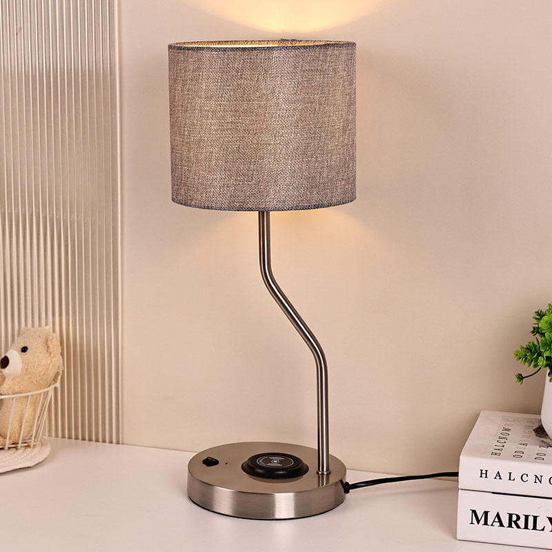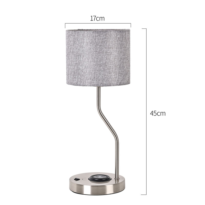 Stolná lampa na bezdrôtovú nabíjačku telefónu s látkovým tienidlom vyrobená z tradičného látkového tienidla